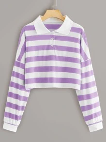 Purple & White Chunky Striped Polo Top