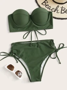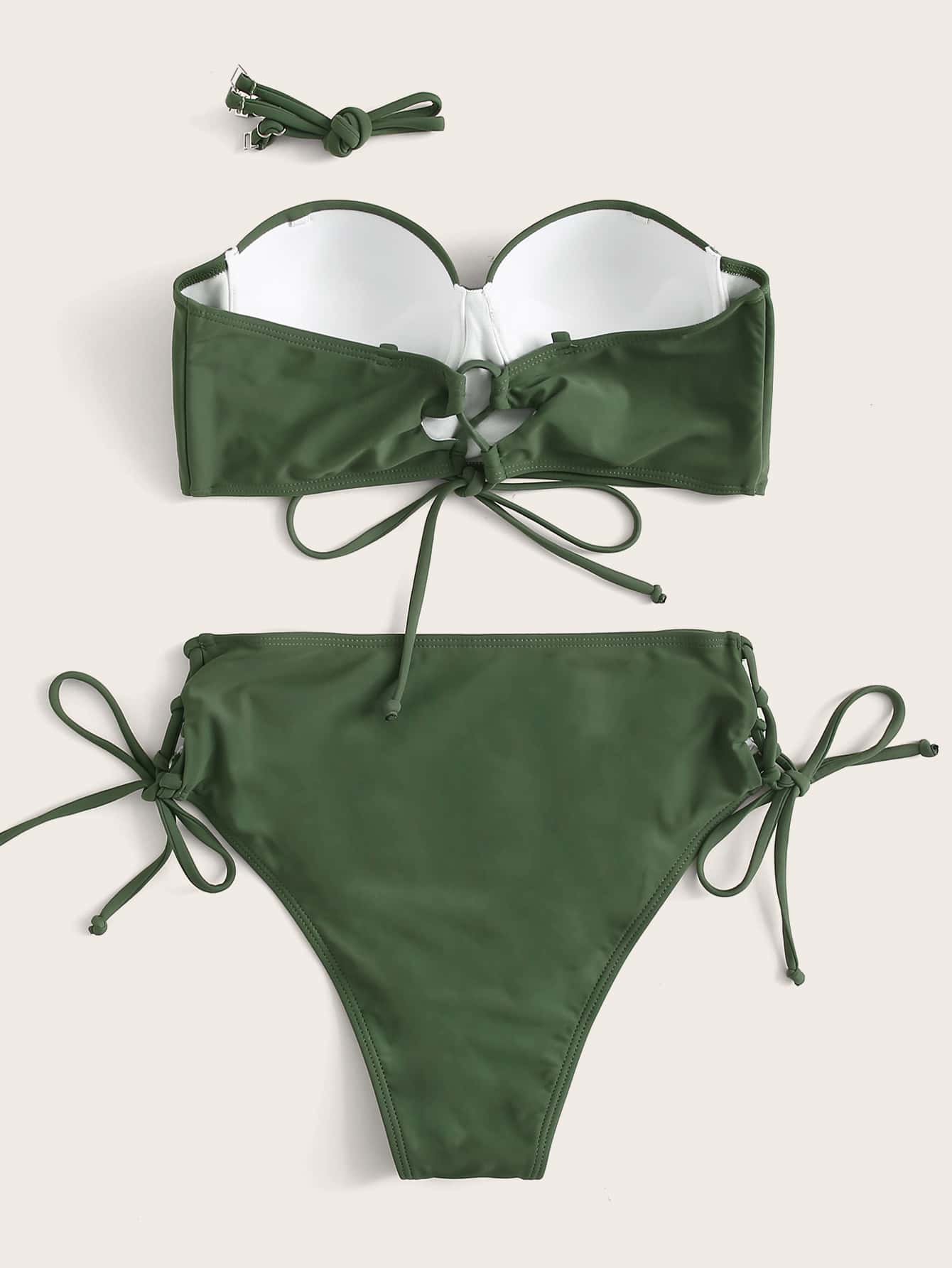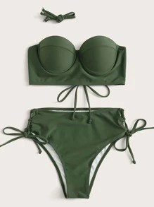 Push Up Bandeau High Waist Bikini Set Summer Beach