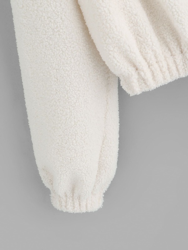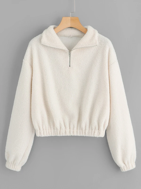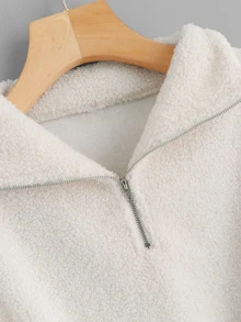 Quarter Zip Elastic Hem Teddy Sweatshirt