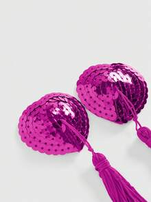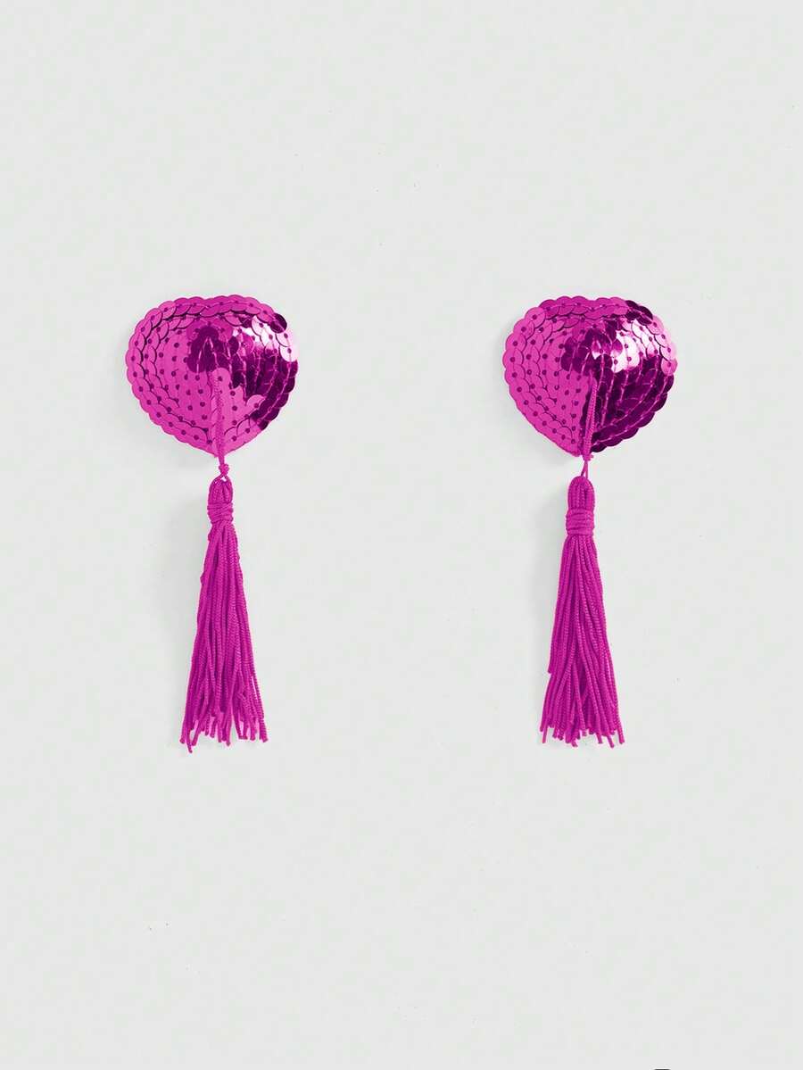 ROMWE Avant 1 Pair Sequin Heart Tassel Nipple Pasties, Suitable For Everyday Wear