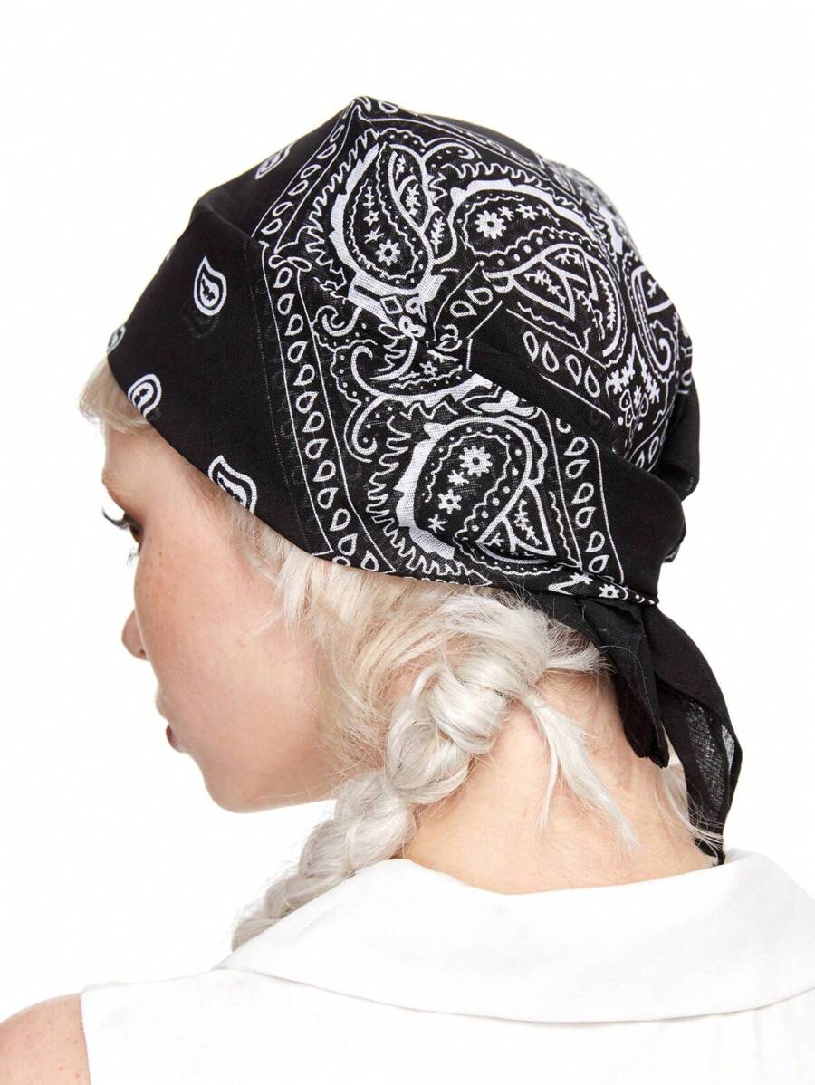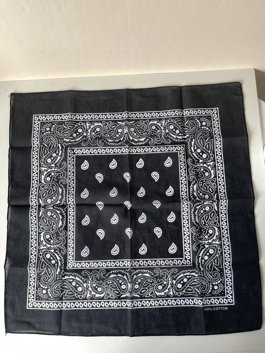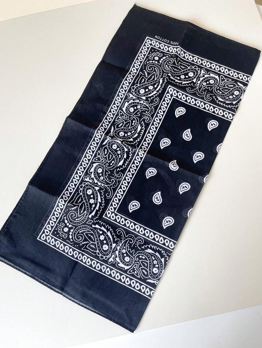 ROMWE Avant 1pc Paisley Print Black Bandana Scarf, Boho Style Multipurpose Accessory For Men And Women