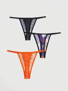 ROMWE Avant 3pcs/Set Halloween Pumpkin, Ghost, Skeleton Print Women's Thong Panties