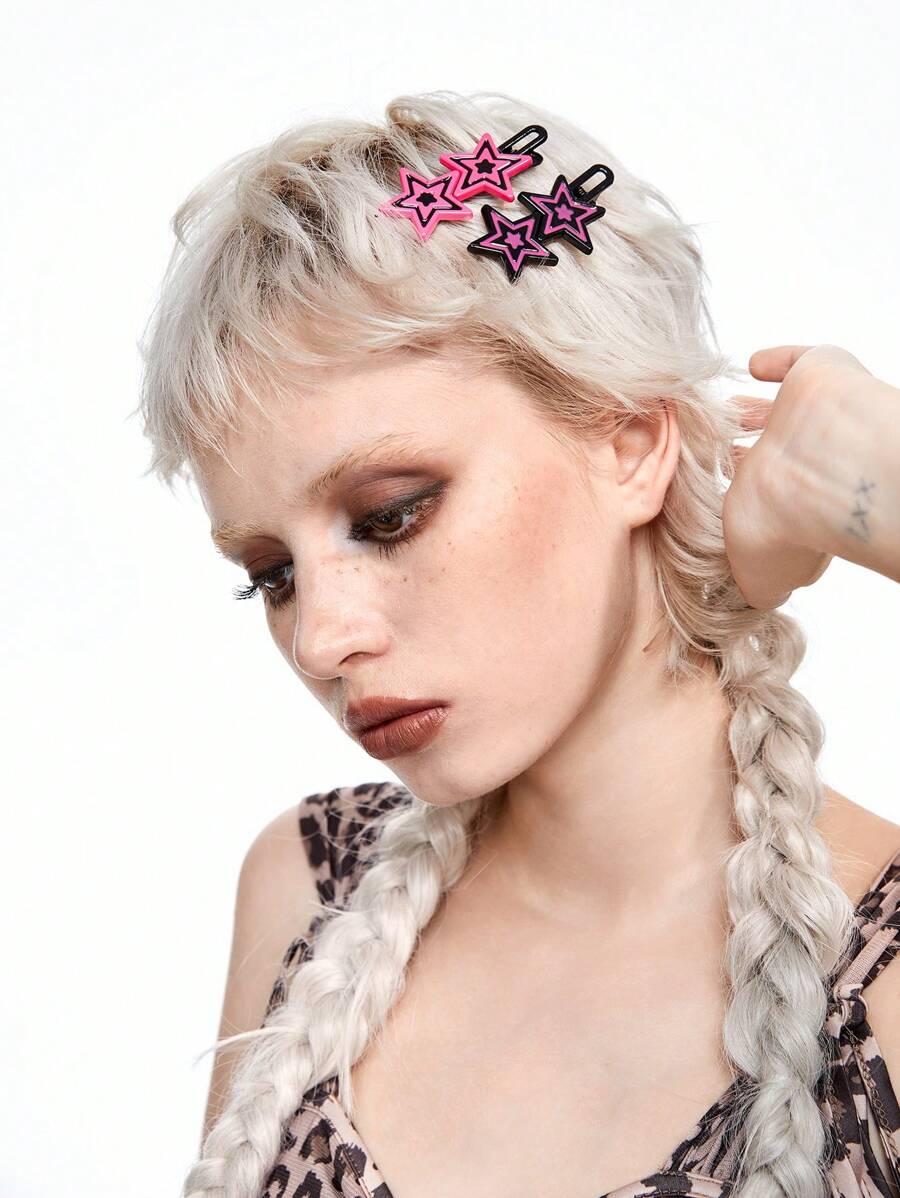 ROMWE Avant 4pcs Cute Y2K Star Design Hair Clips For Women