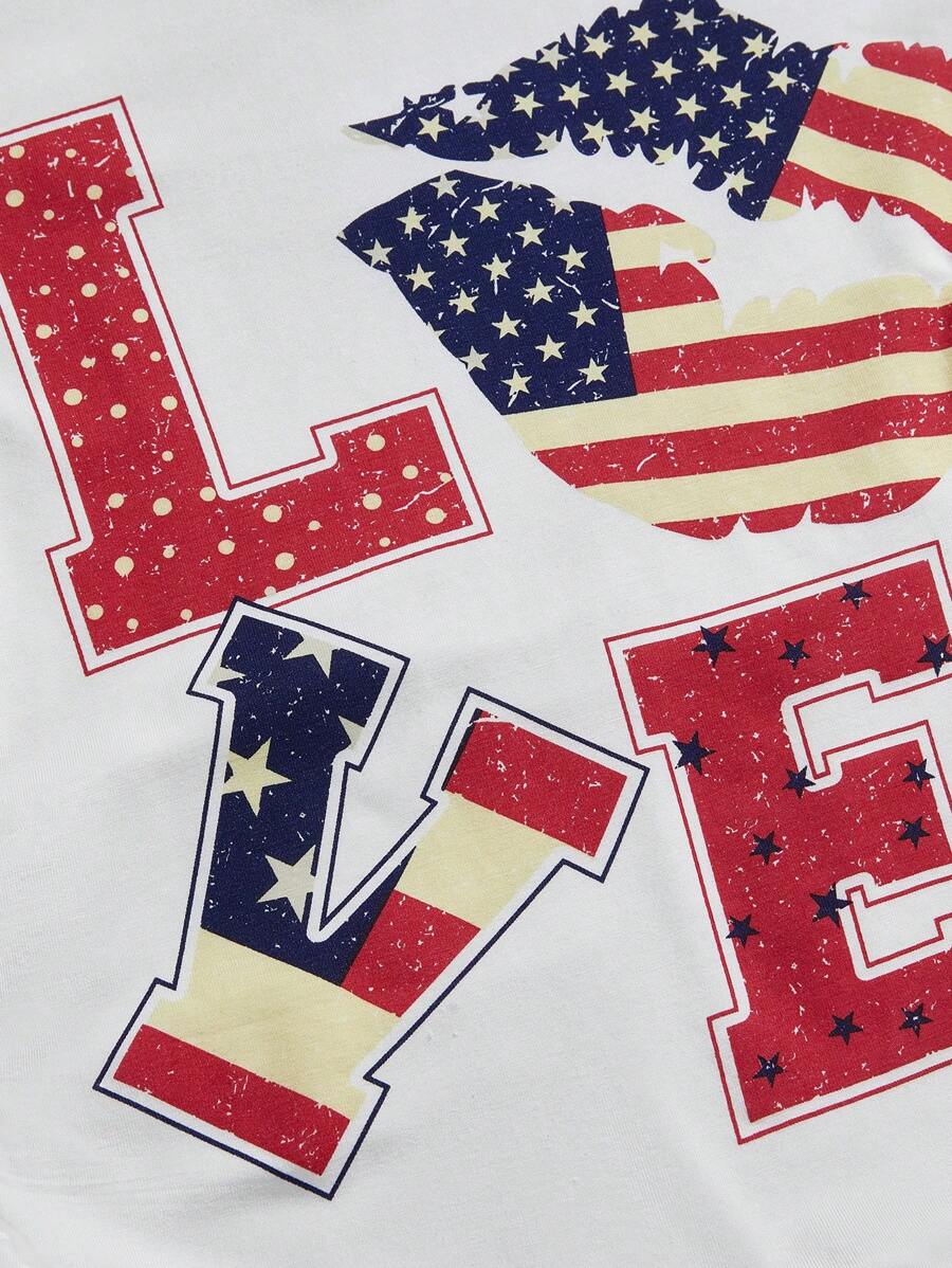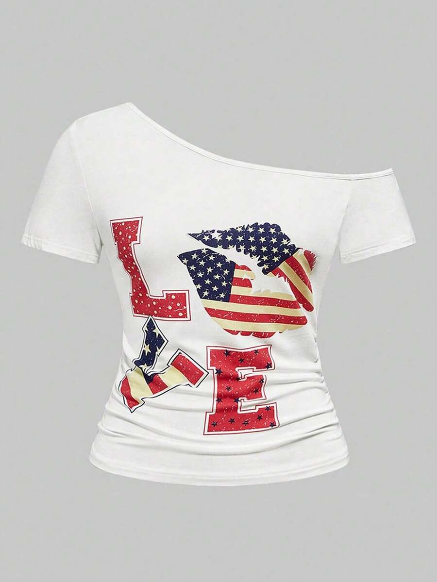 ROMWE Avant Avant Women Plus Size Asymmetric Collar Flag, Heart And Lip Print Concert T-Shirt