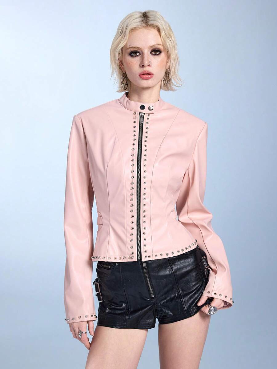 ROMWE Avant Biker Chic Fitted PU Rivet Jacket