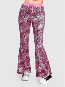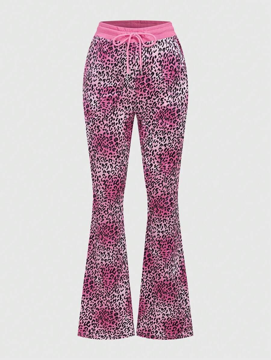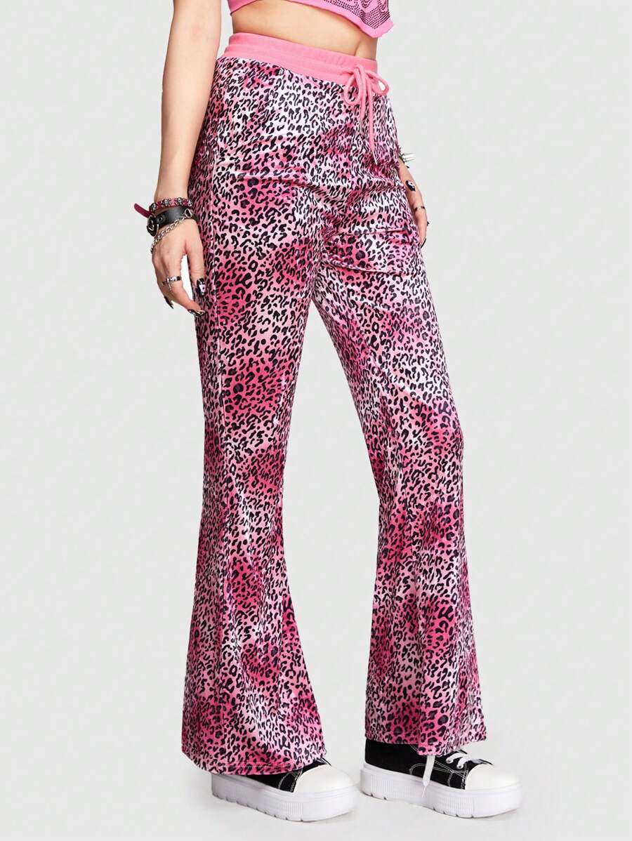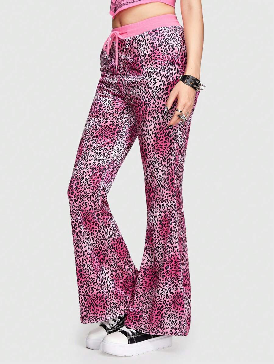 ROMWE Avant Black And Pink Ombre Leopard Print Velvet Flare Pants, Slim Fit