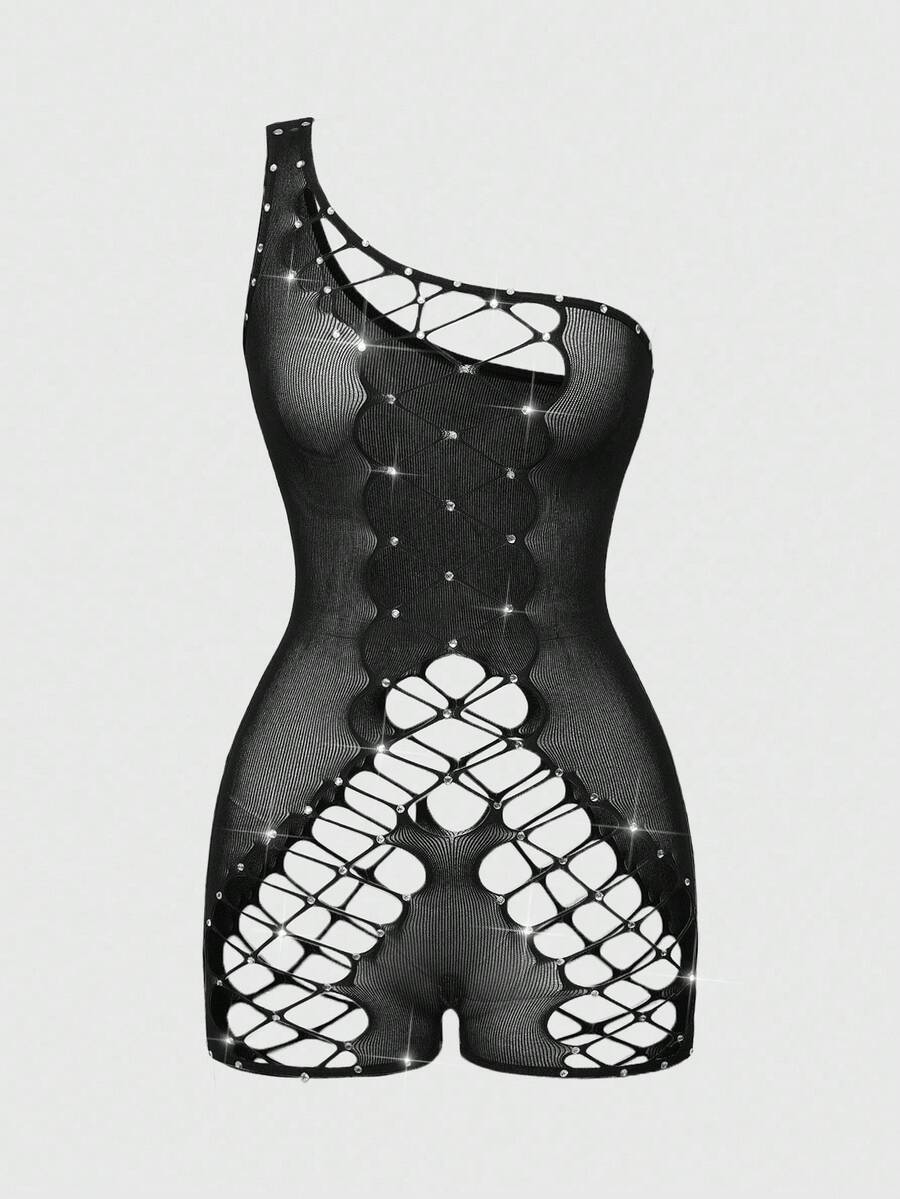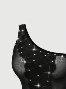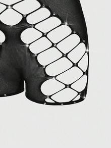 ROMWE Avant Fashionable Avant-Garde Highly Elastic Mesh Rhinestone Decor Sexy Jumpsuit For Women