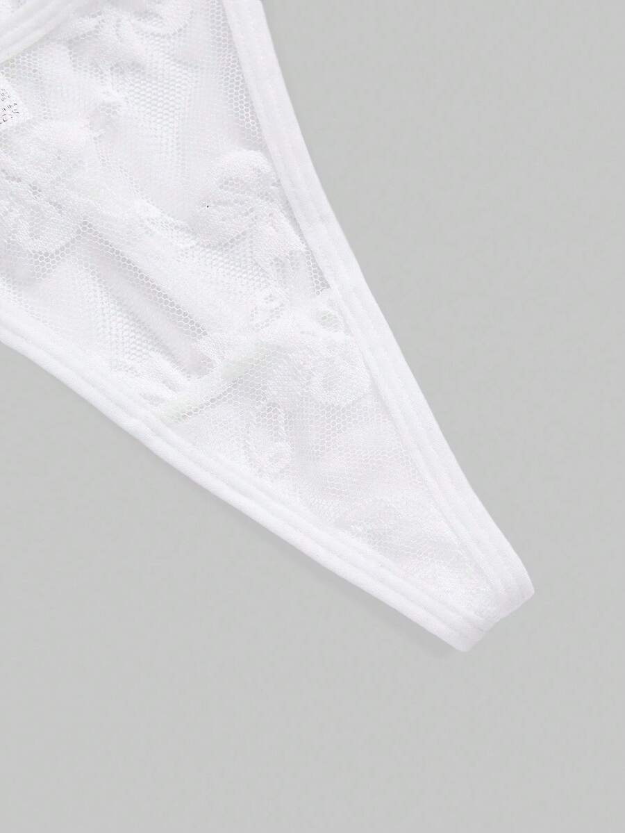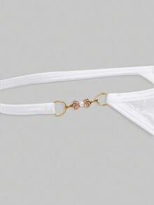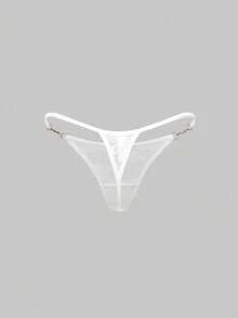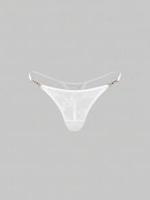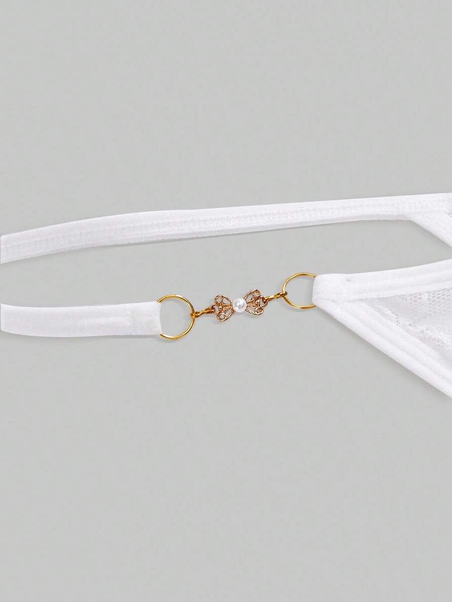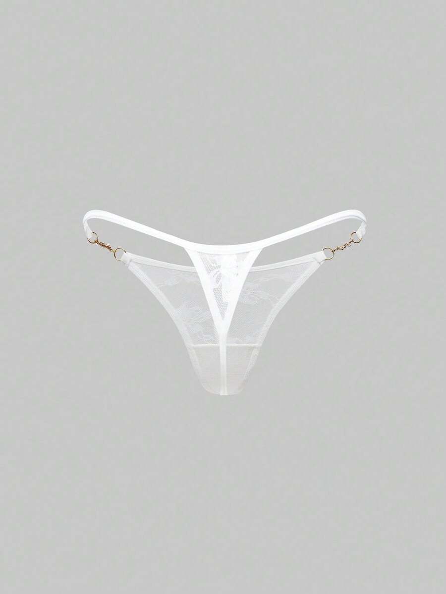 ROMWE Avant Fashionable Lace Floral Print Pearl Metal Chain Thong Panties