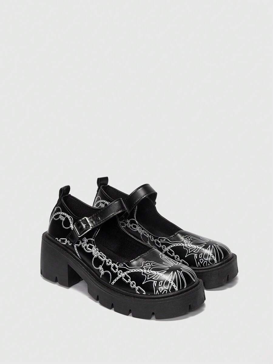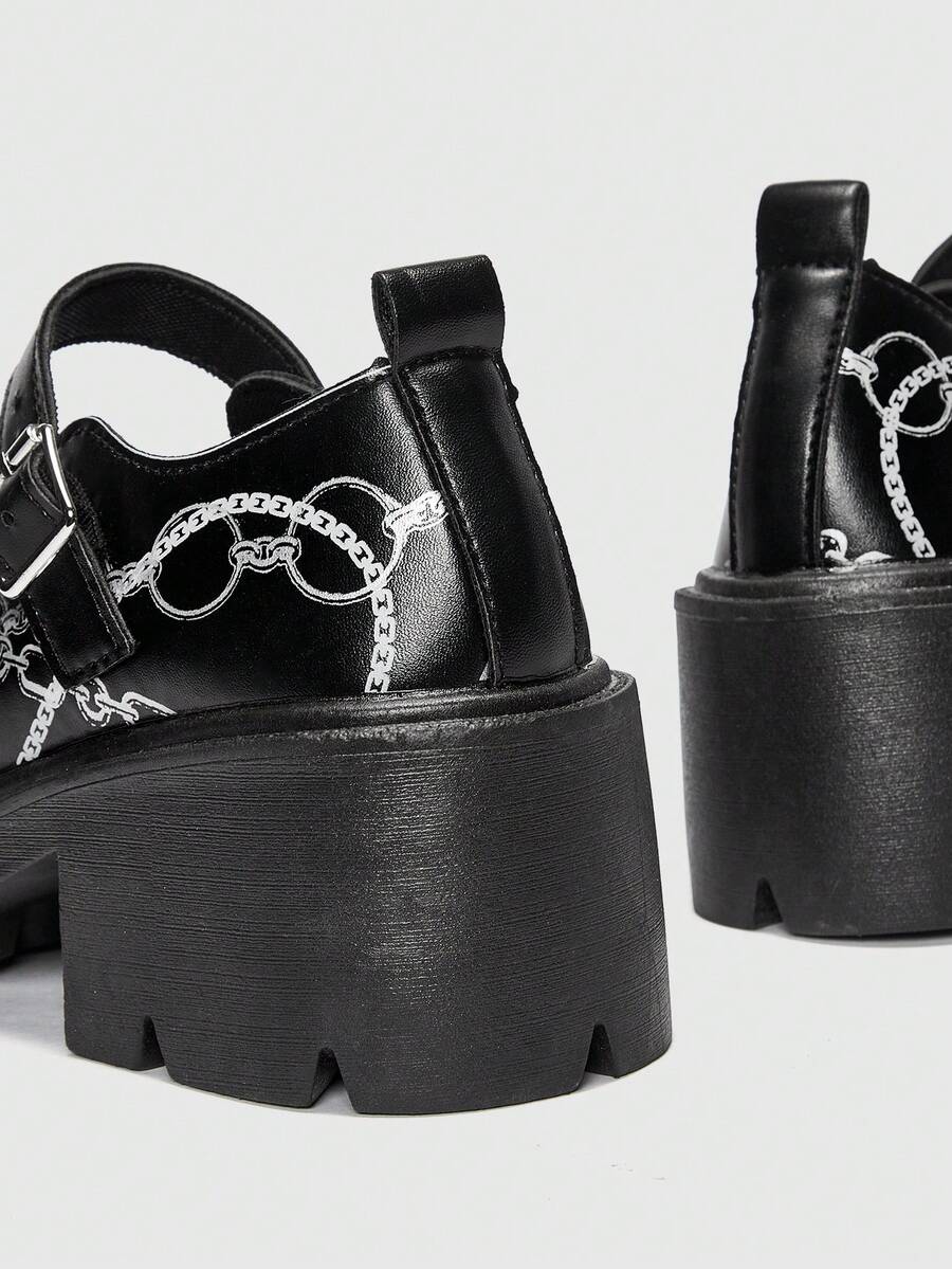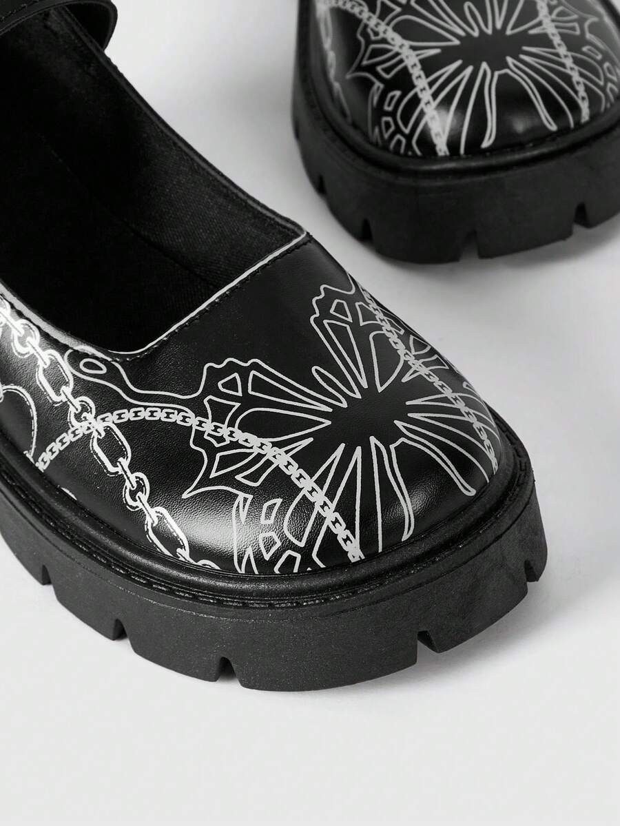 ROMWE Avant Graphic Print Platform Mary Jane Shoes