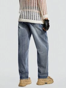 ROMWE Avant Guys Star Print Straight Leg Baggy Jeans