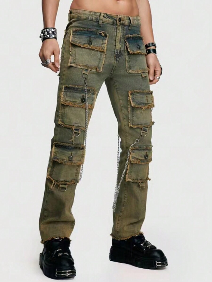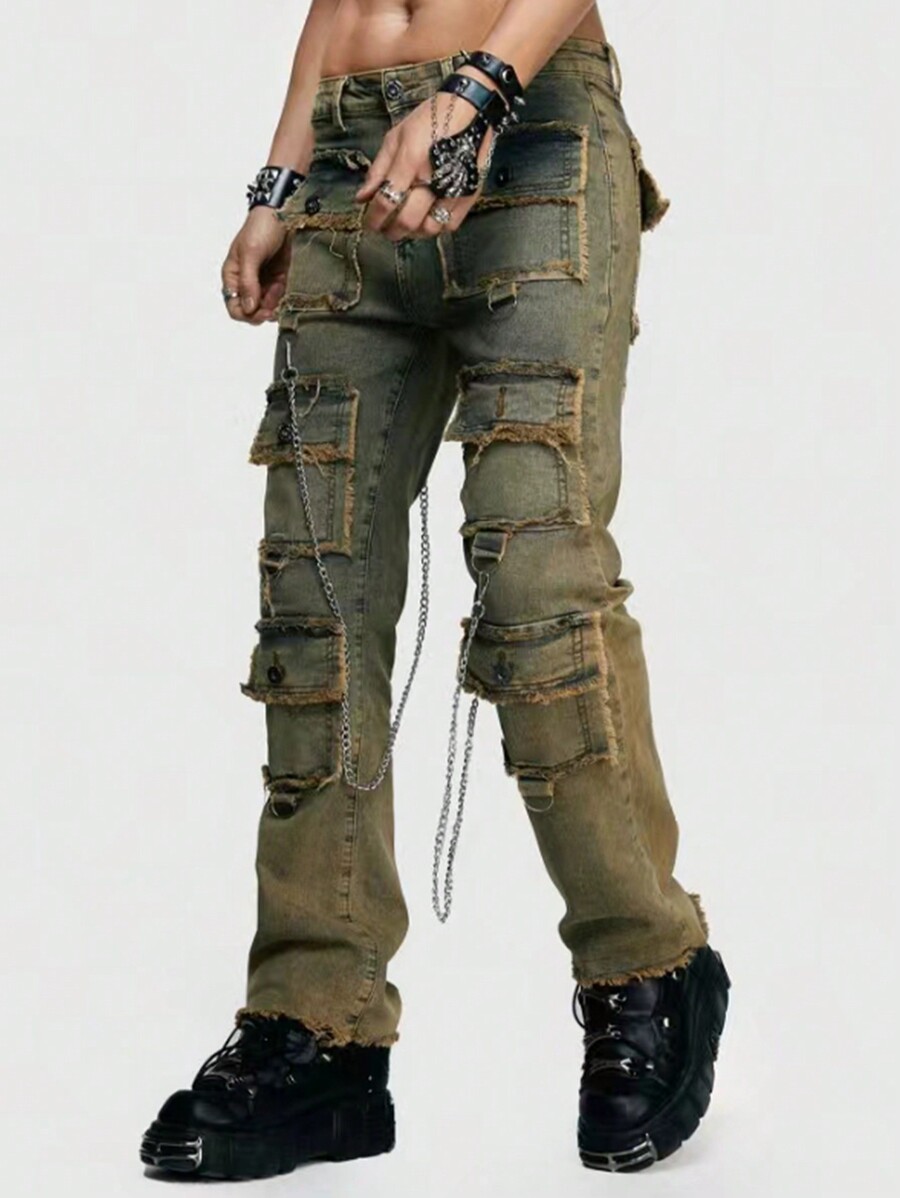 ROMWE Avant Men Fashionable Casual Retro Worn Out Frayed Edge Jeans For Work And Leisure