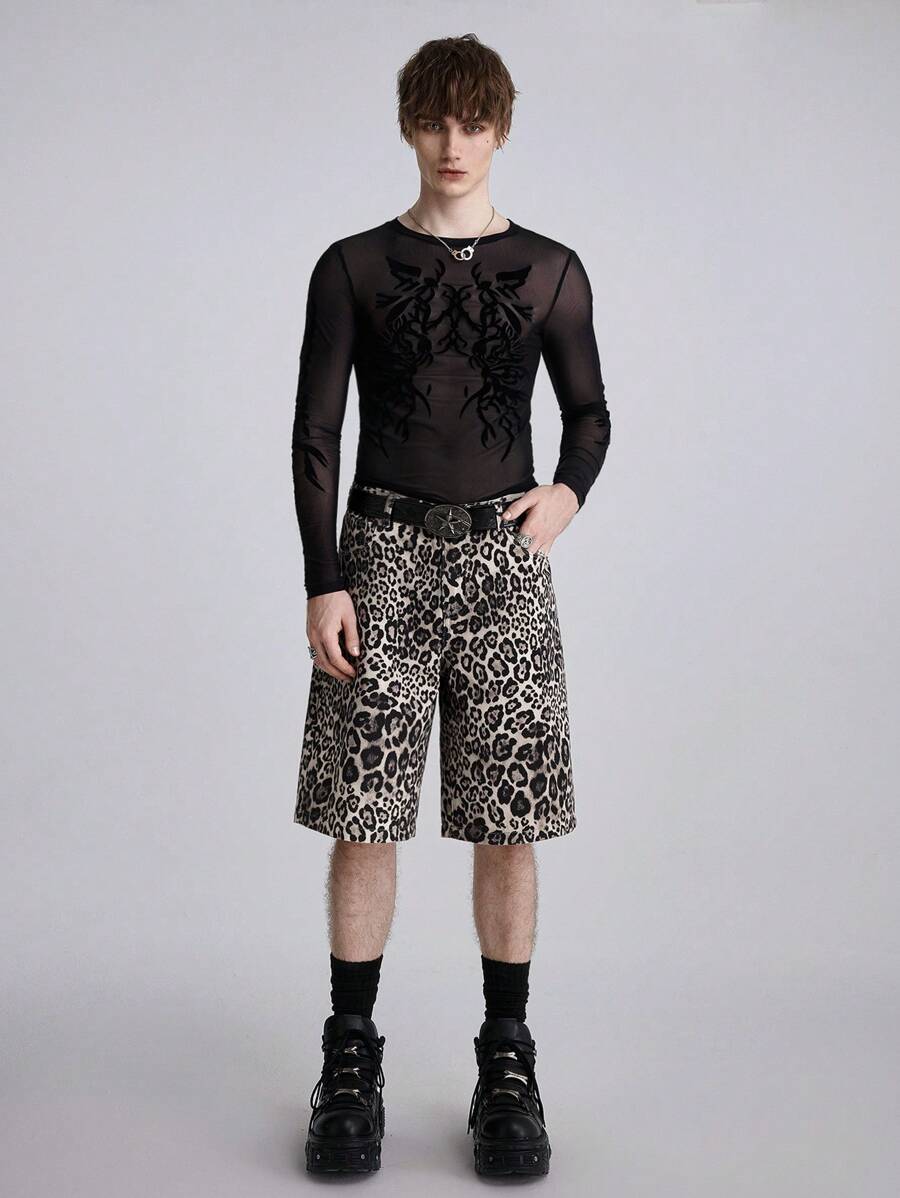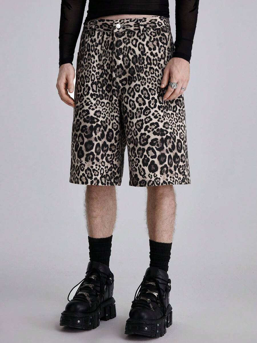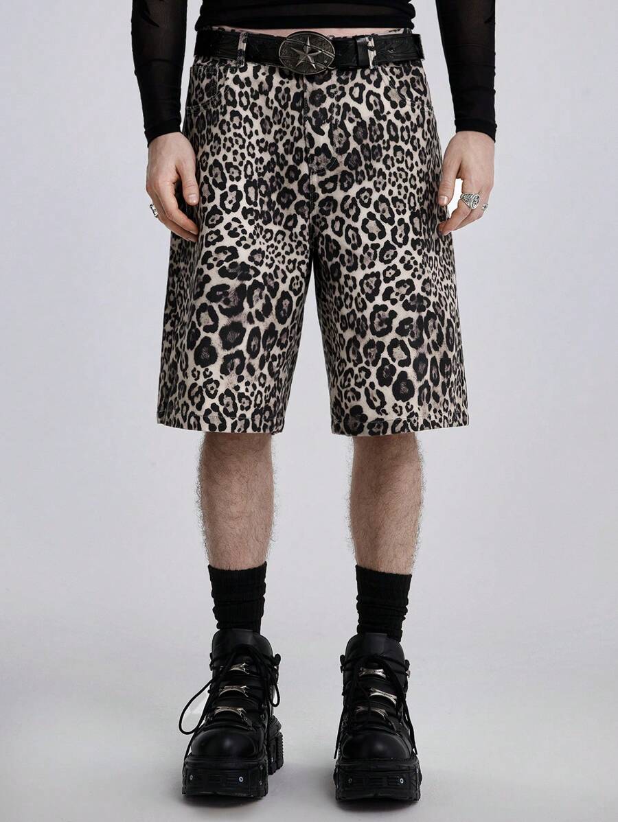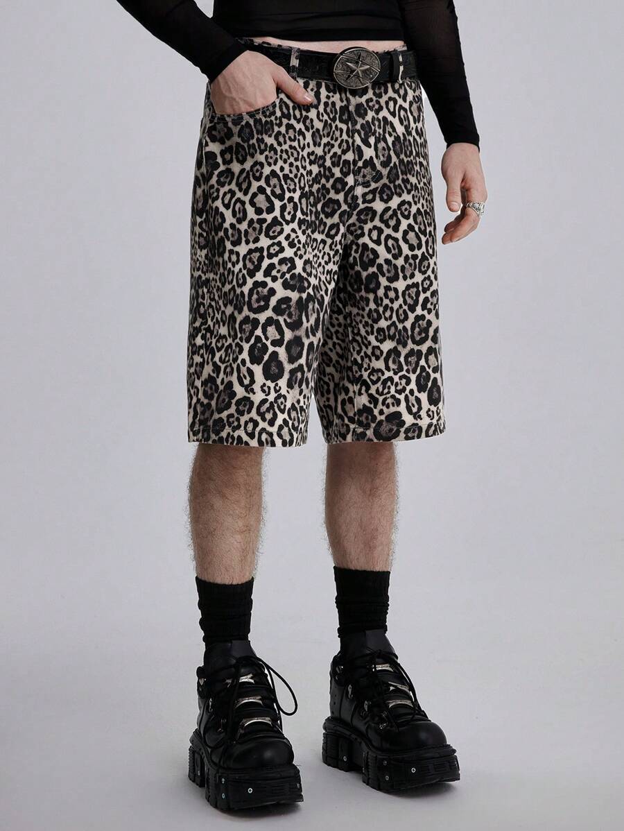 ROMWE Avant Men Leopard Print Denim Shorts Without Belt