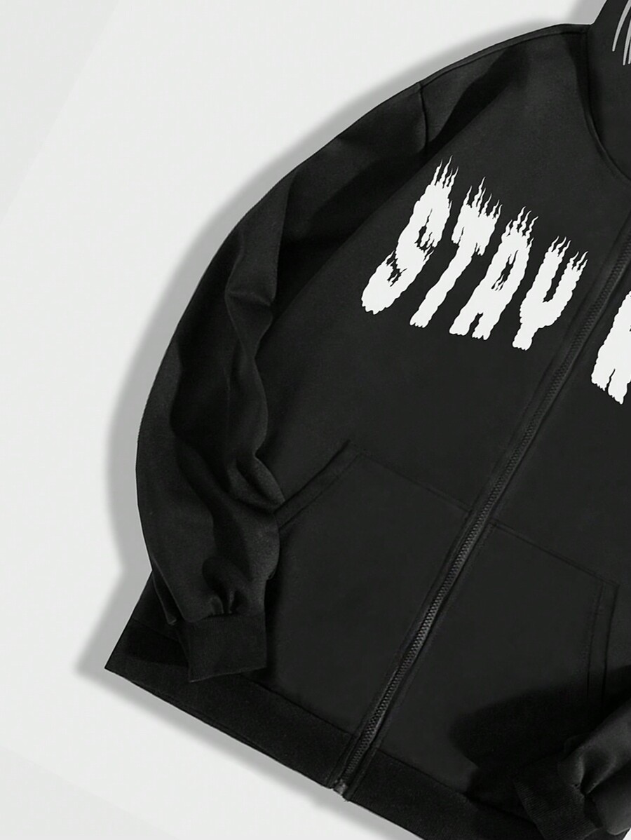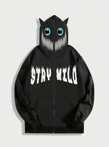 ROMWE Avant Men Letter Graphic Zip Up 3D Ears Design Hoodie, School