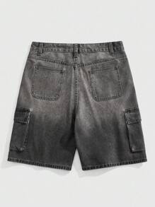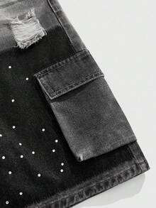 ROMWE Avant Men's Casual Washed Distressed Rhinestone Multi-Pocket Denim Cargo Shorts
