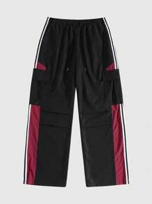 ROMWE Avant Men's Contrast Color Casual Black And Red Pants