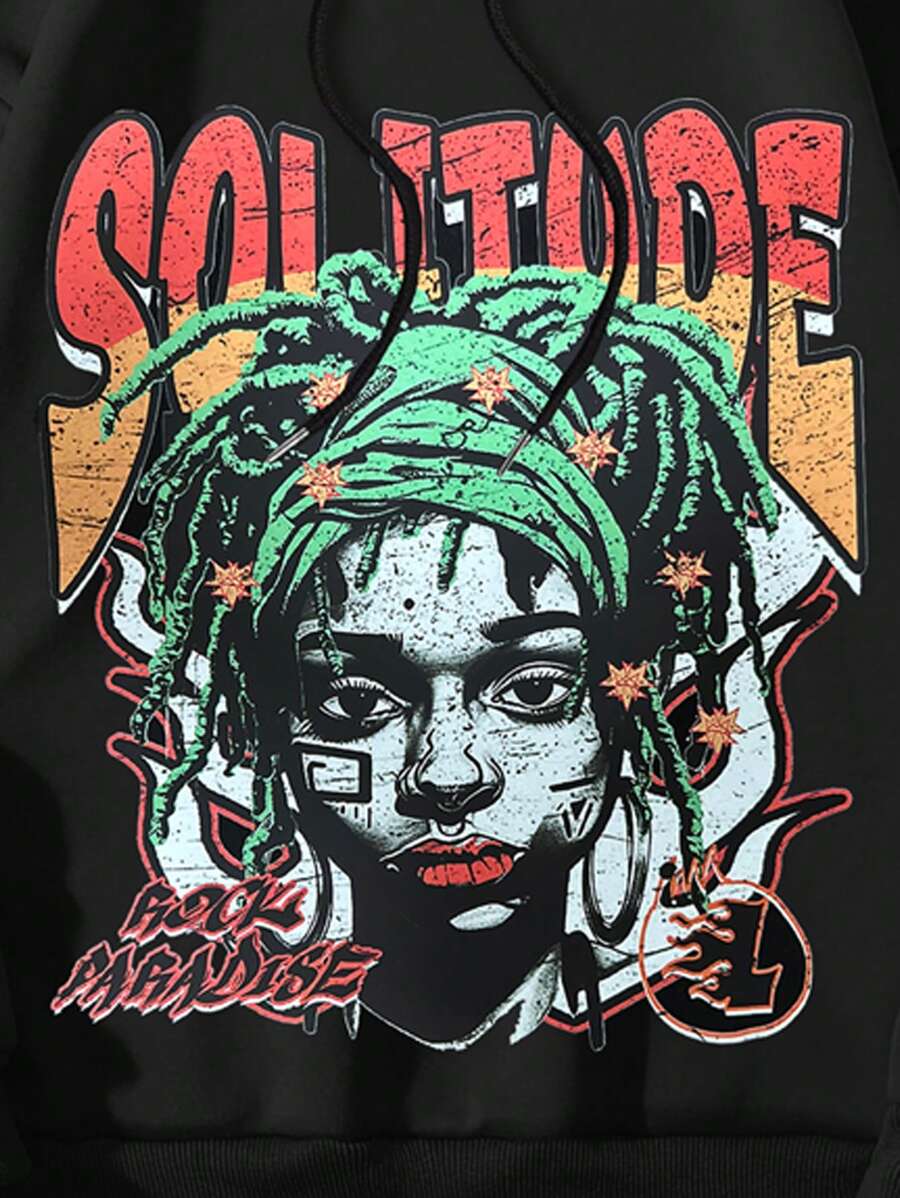 ROMWE Avant Men's Drawstring Letter & Figure Print Hooded Sweatshirt, Casual Daily