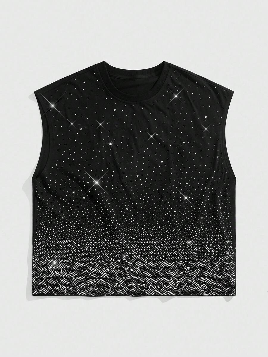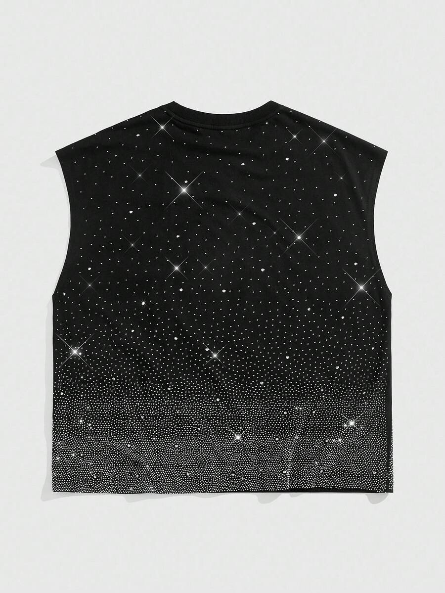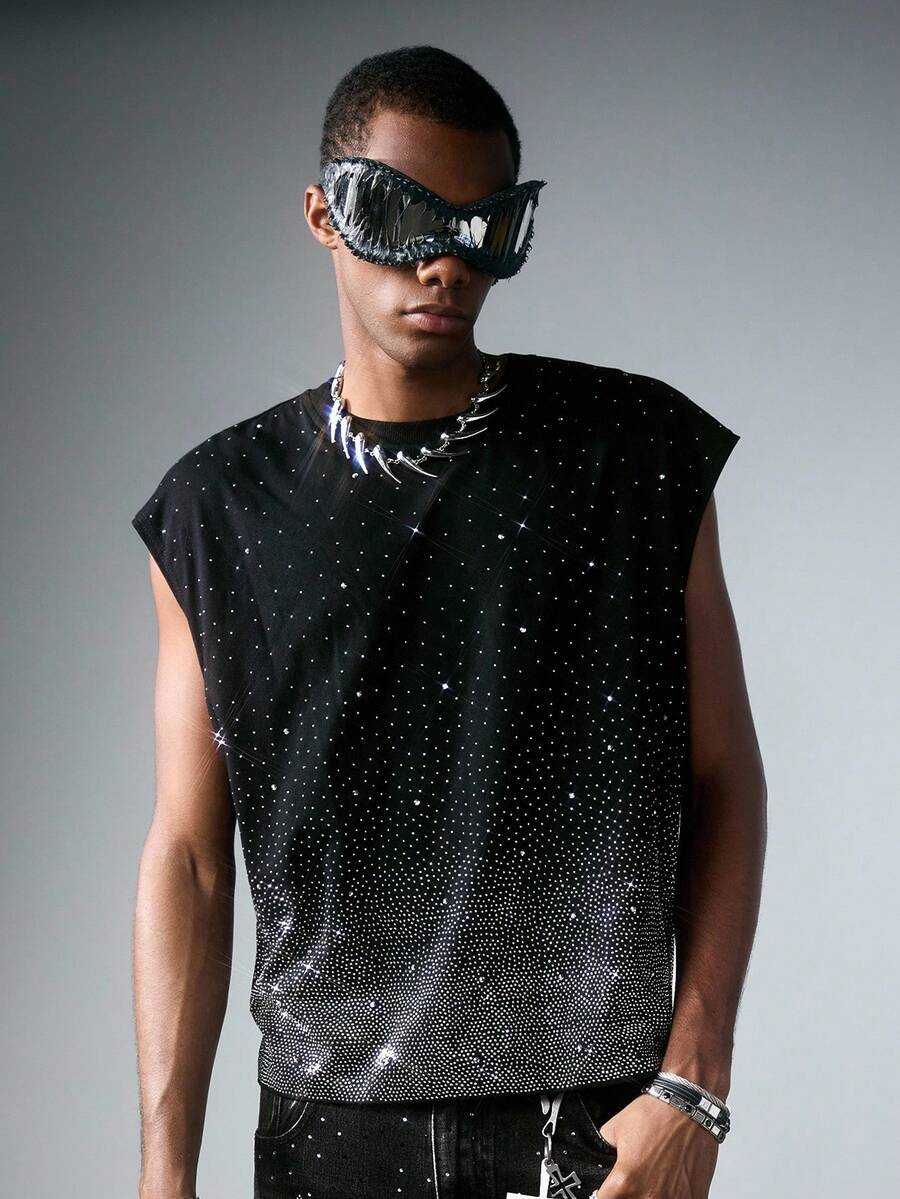 ROMWE Avant Men's Sparkling Diamond Print Round Neck Casual Loose Tank Top