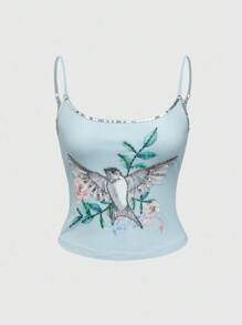 ROMWE Avant New Chinese Style Floral Embroidery Beaded Camisole