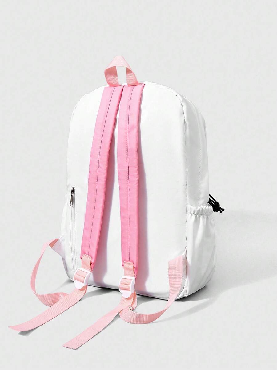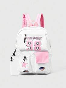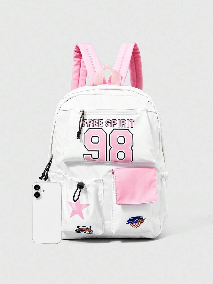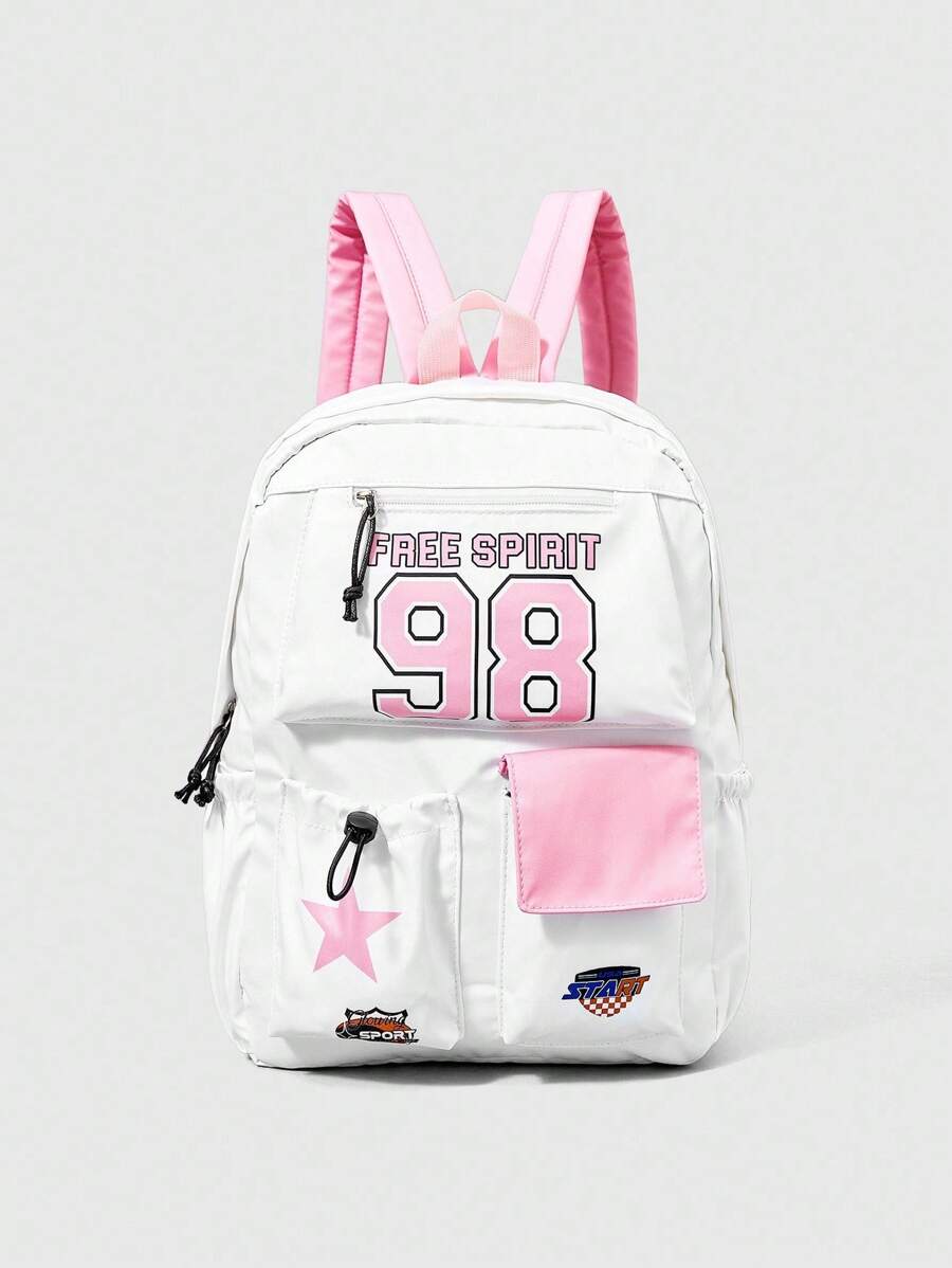 ROMWE Avant Pink Number 98 Print Large Capacity Backpack, Suitable For Back To School Season
