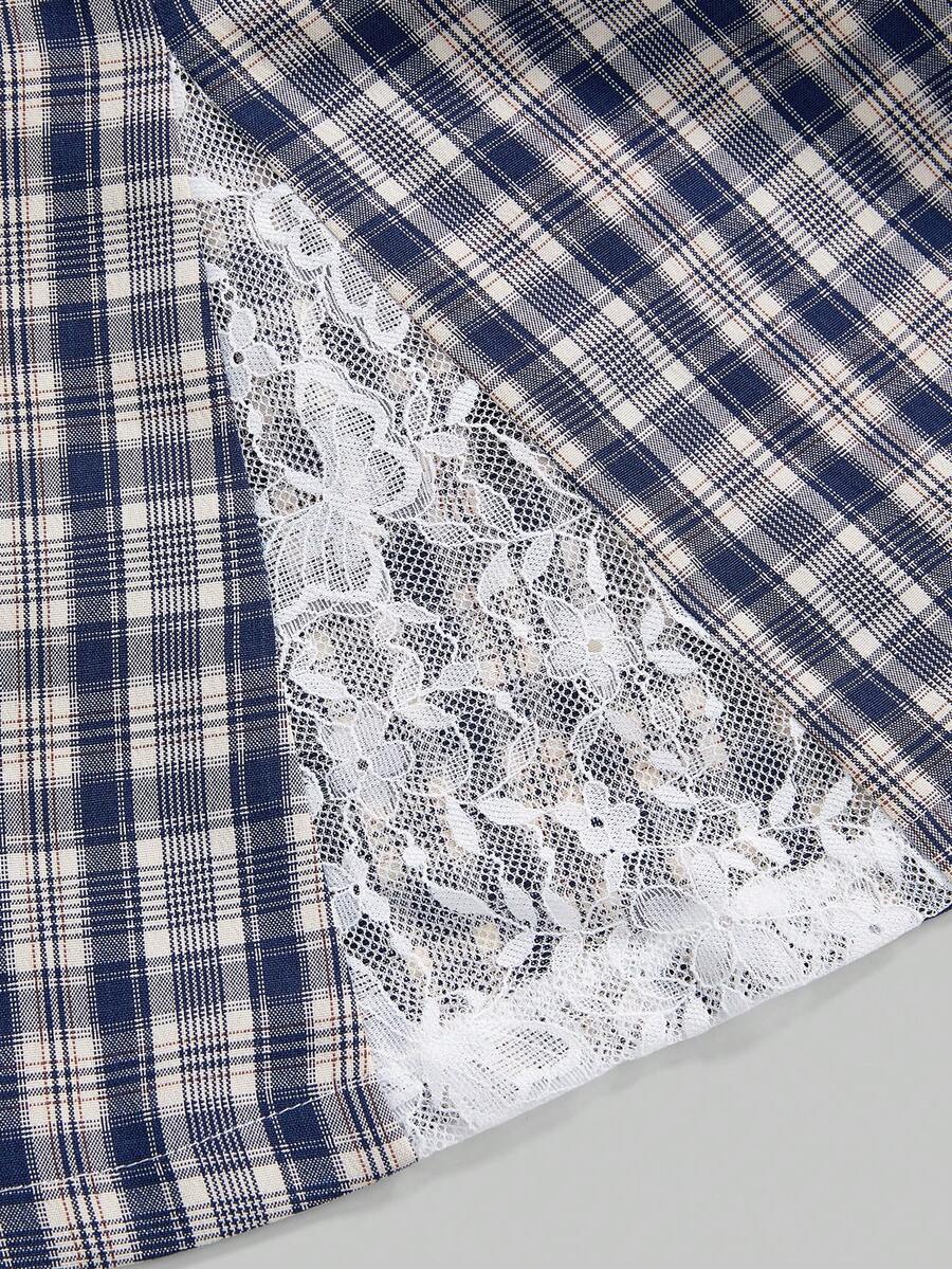 ROMWE Avant Plus Size Retro Romantic Plaid Pinafore Dress, Mini Skirt