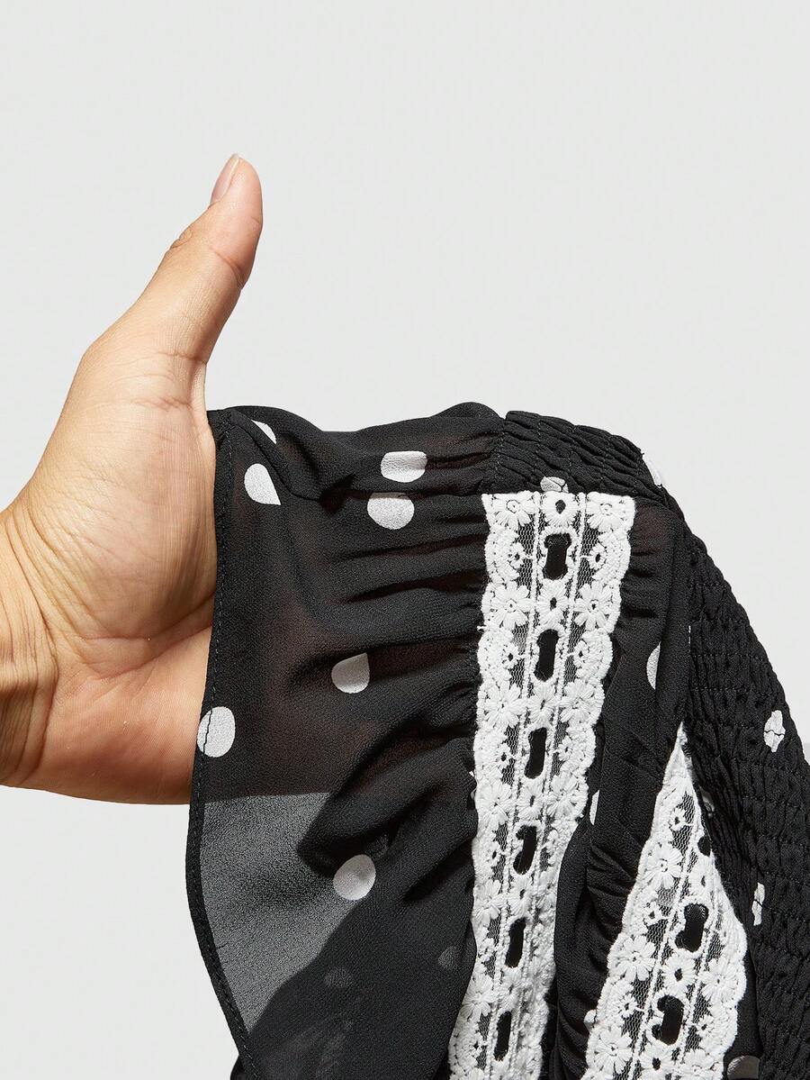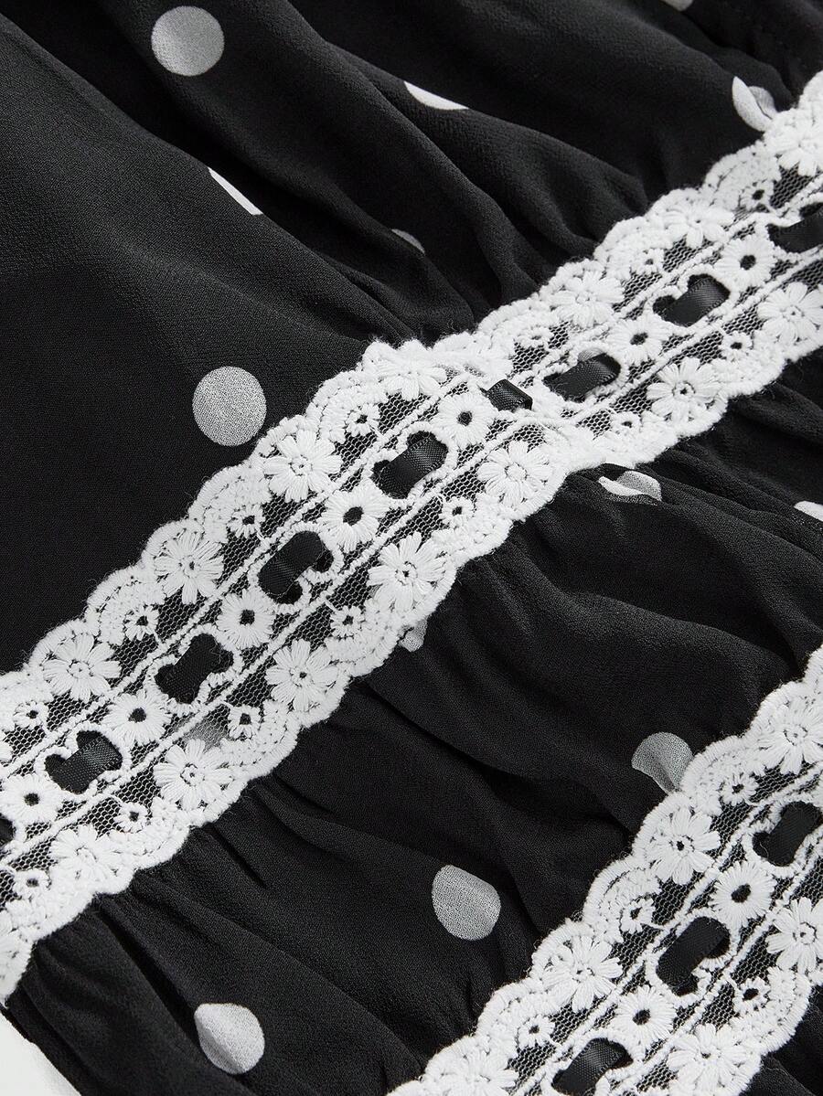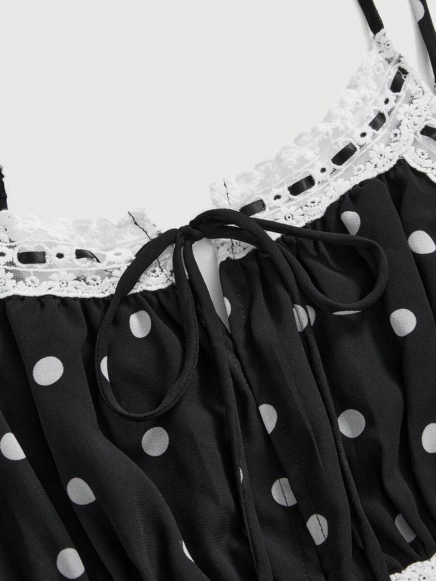 ROMWE Avant Plus Size Sicilian Vacation Retro Polka Dot Hollow Lace-Up Multilayer Camisole