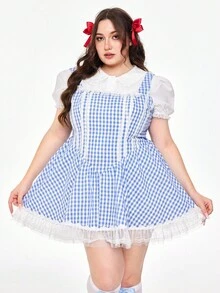 ROMWE Avant Plus Size Women Halloween Plaid Print Dress