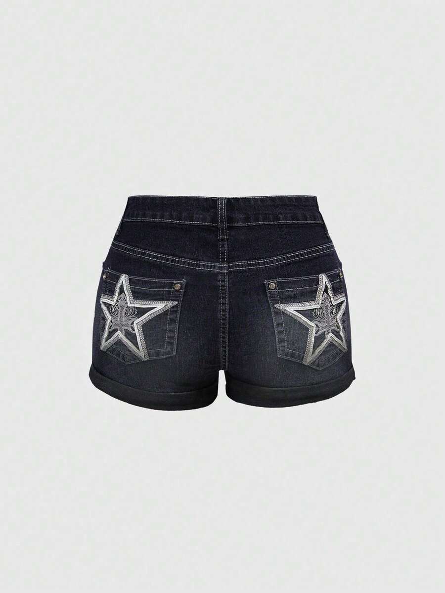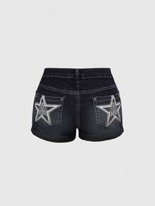 ROMWE Avant Spring/Summer Women's Y2K Star Low Waist Denim Shorts