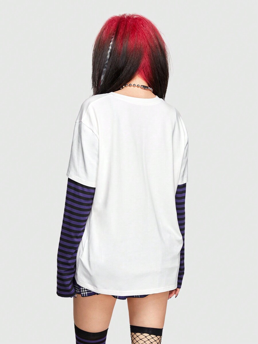 ROMWE Avant Star & Skull Print Striped 2 In 1 T-Shirt