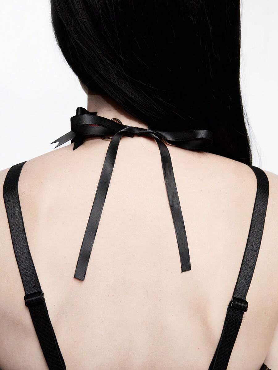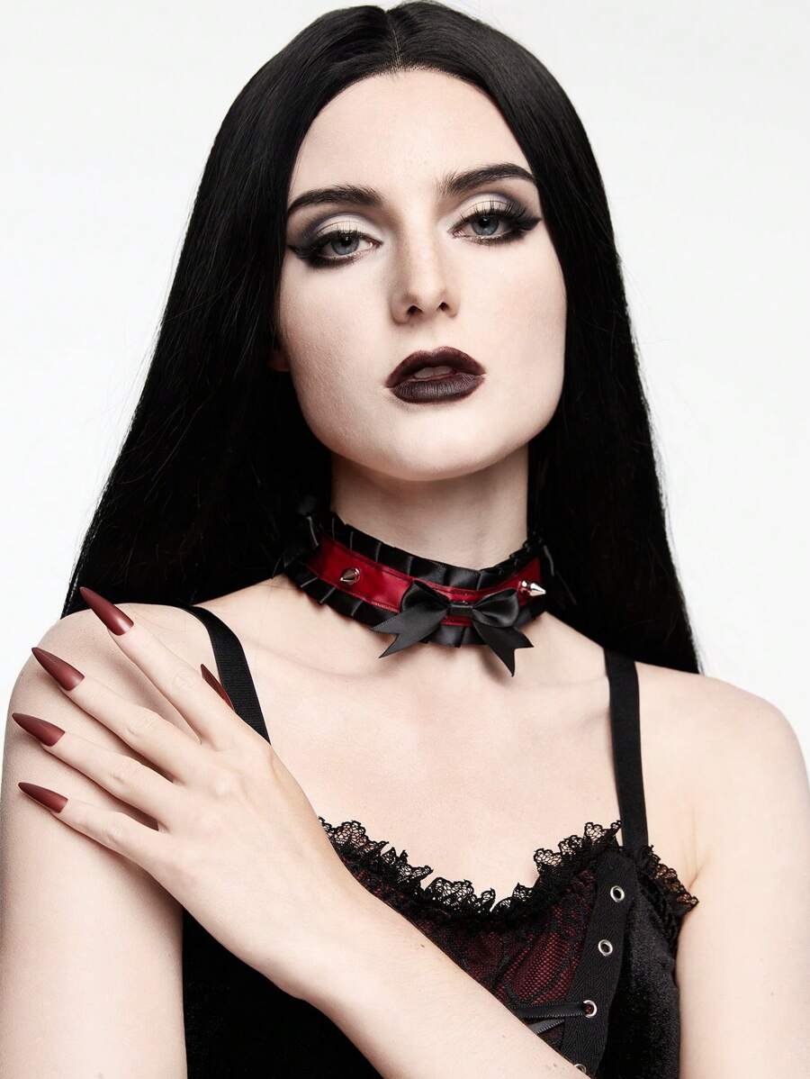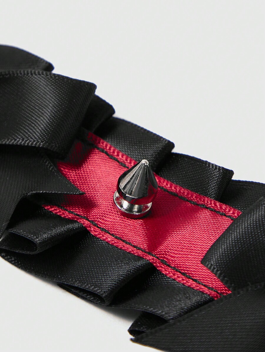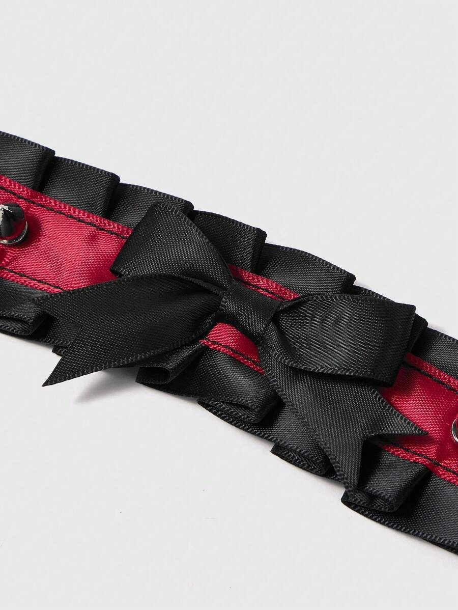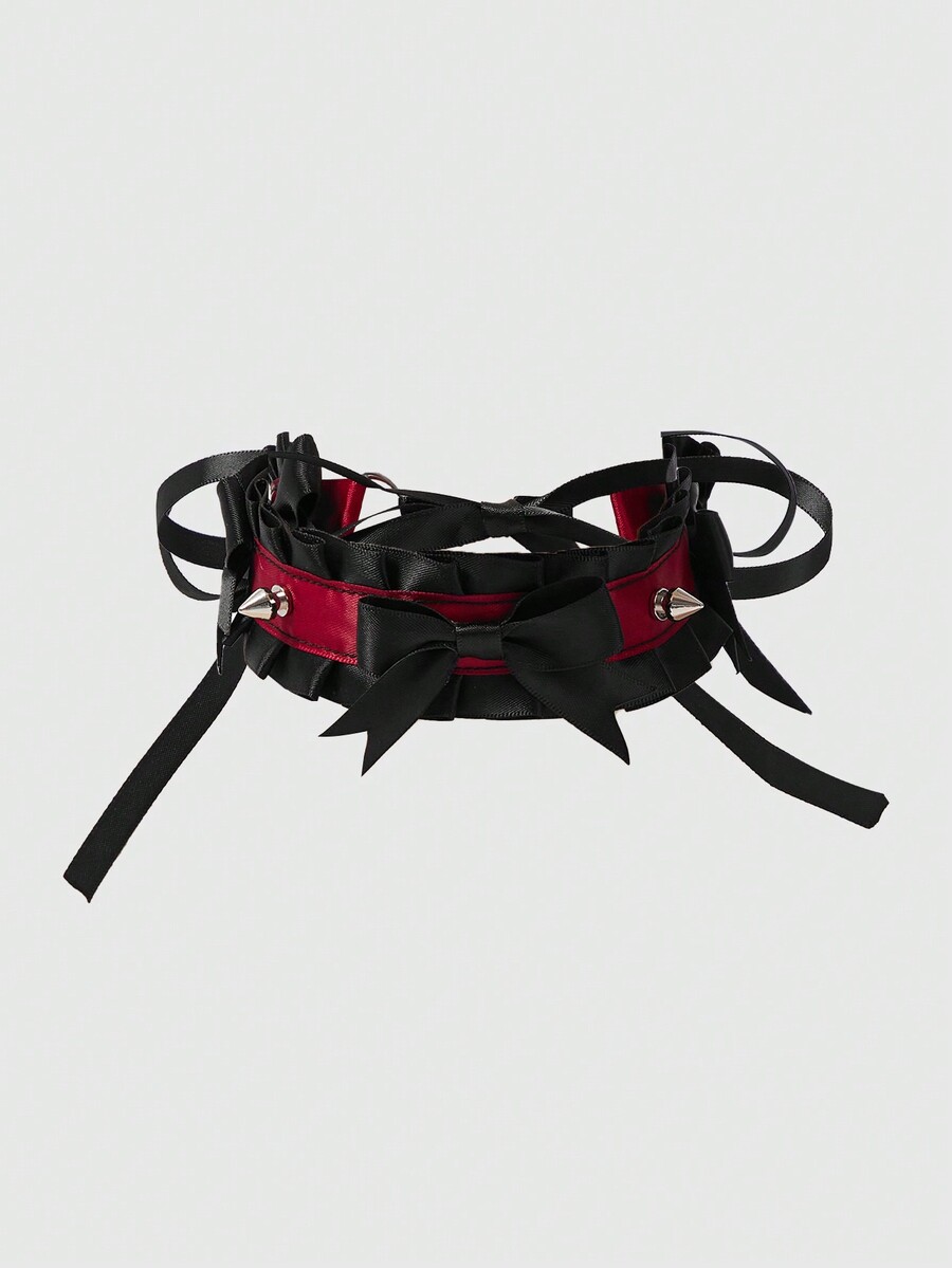 ROMWE Avant Women Black And Red Color Block Double Layer Bow Tie With Spike Decoration Gothic Style Neck Belt Necklace For Party Gathering Match With Dresses