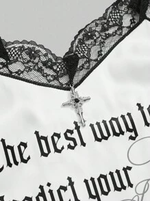 ROMWE Avant Women's Angel Cross Print Satin Mini Dress