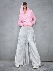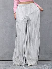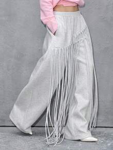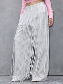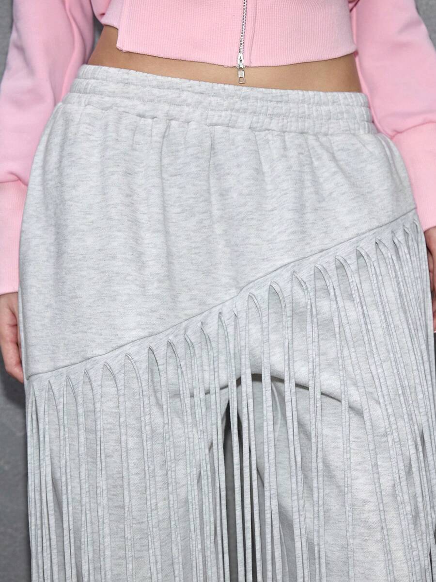 ROMWE Avant Women's Asymmetrical Fringe Straight Loose Sweatpants
