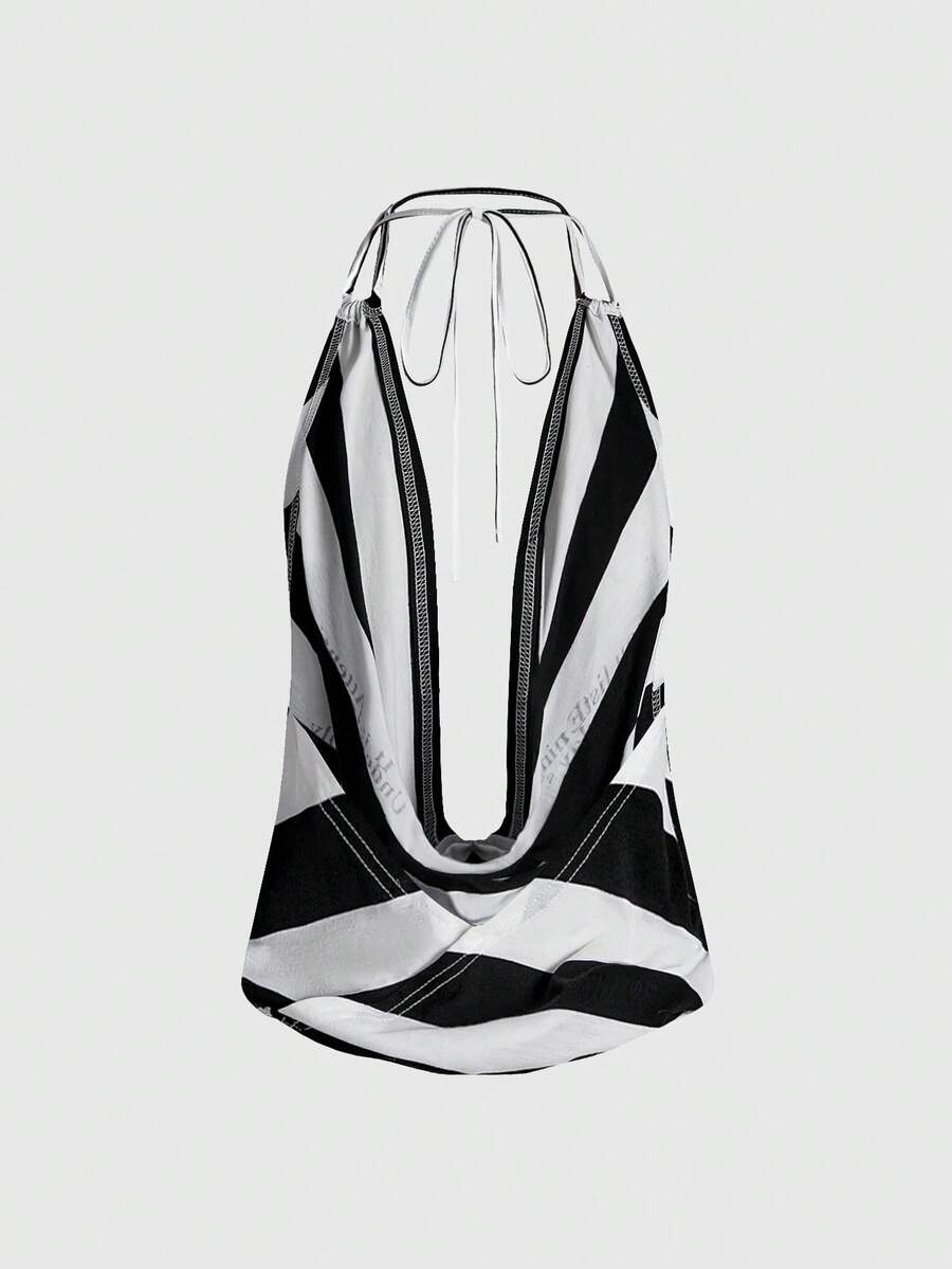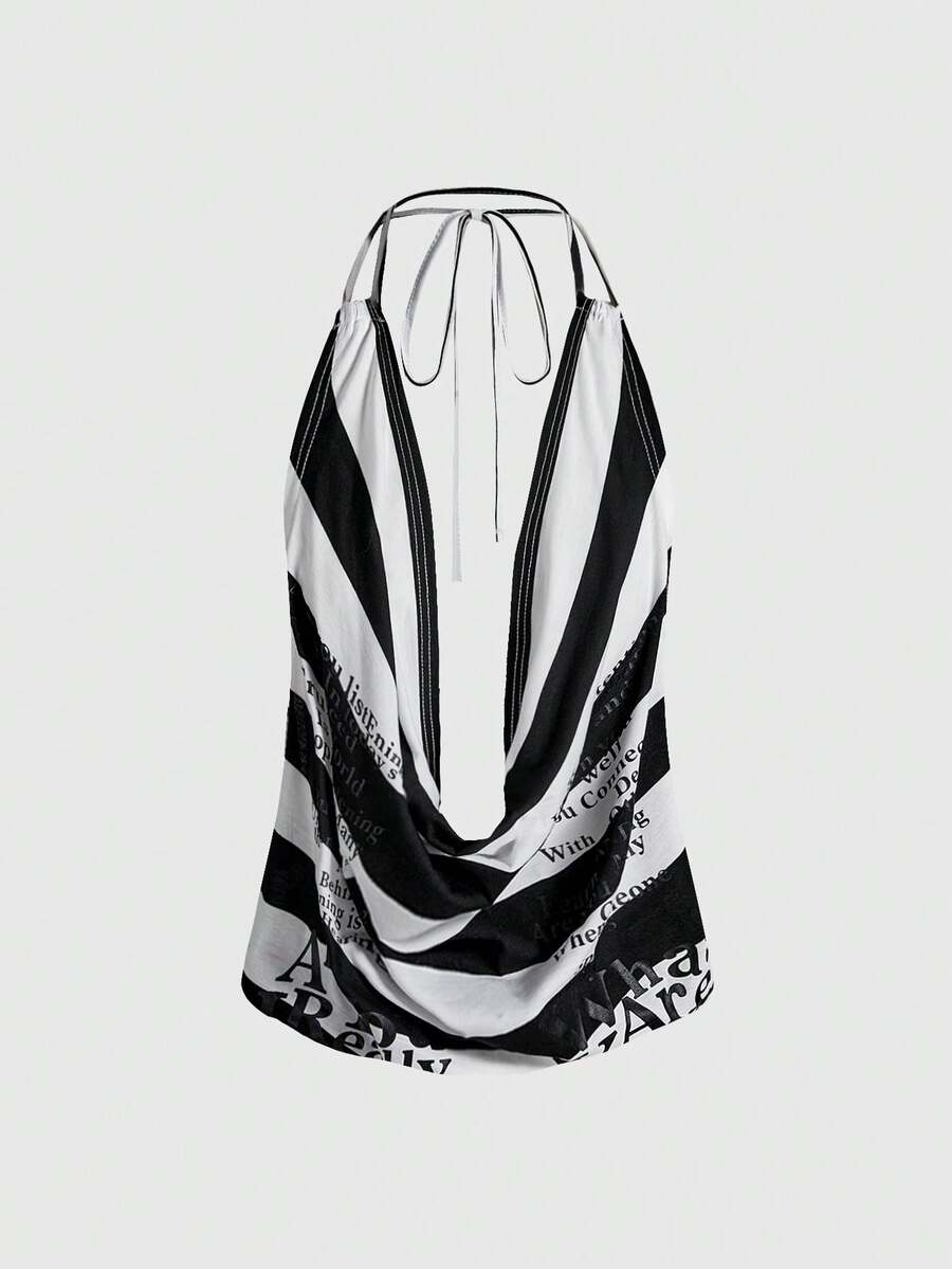 ROMWE Avant Women's Fashion Sexy Contrast Stripe Slogan Print Halter Backless Camisole