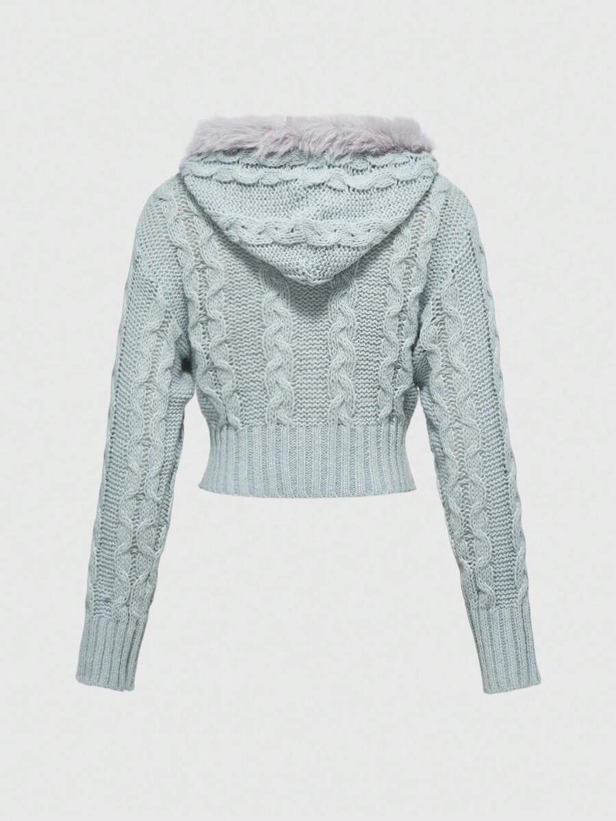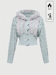ROMWE Avant Women's Hooded Patchwork Batwing Sleeve Cropped Cardigan