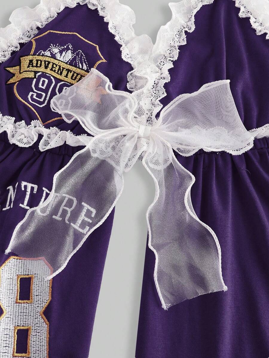 ROMWE Avant Women's Retro Sports Sexy Lace Trim Letter Embroidered Halter Neck Top