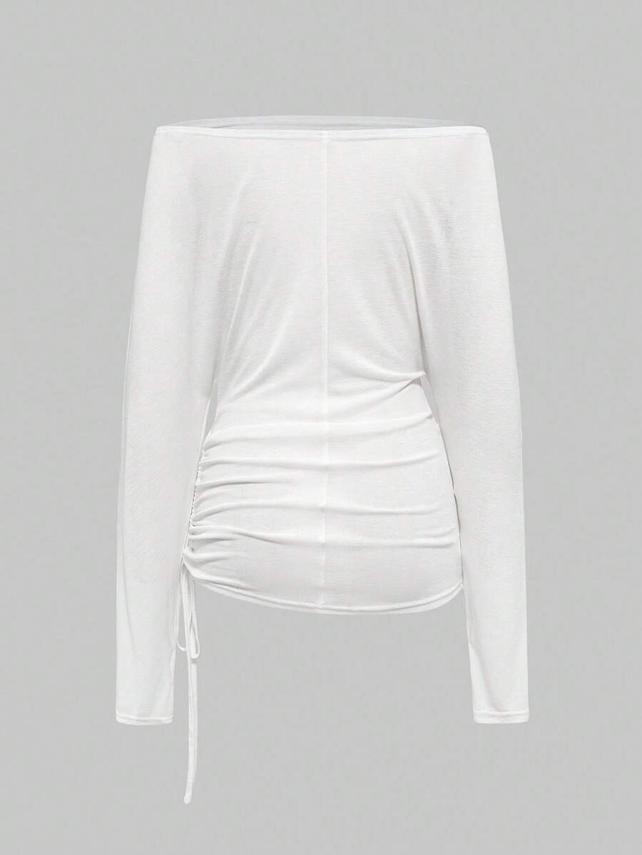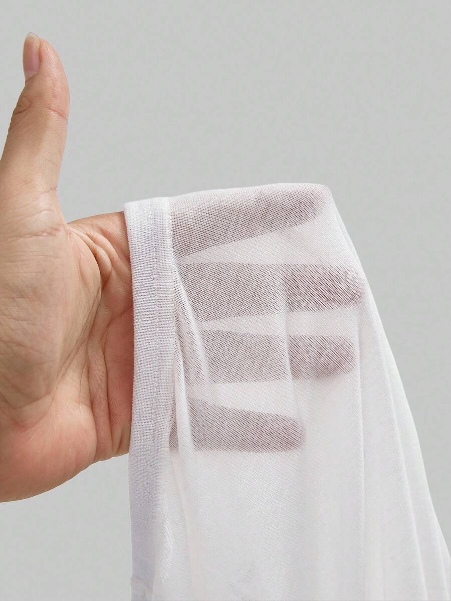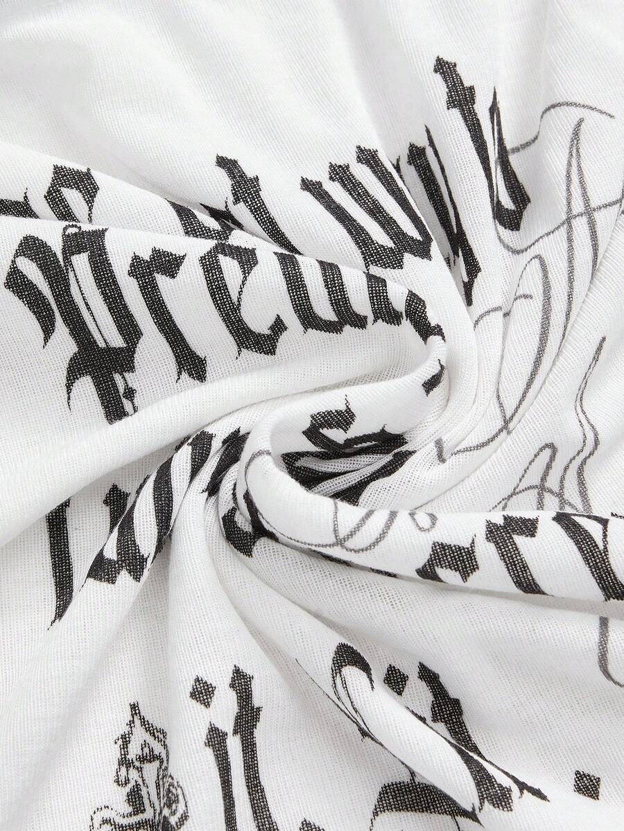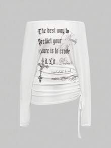 ROMWE Avant Women's Retro Y2K Baddie Romantic Punk Cross Letter Print Off Shoulder Long Sleeve Sheer T-Shirt Top