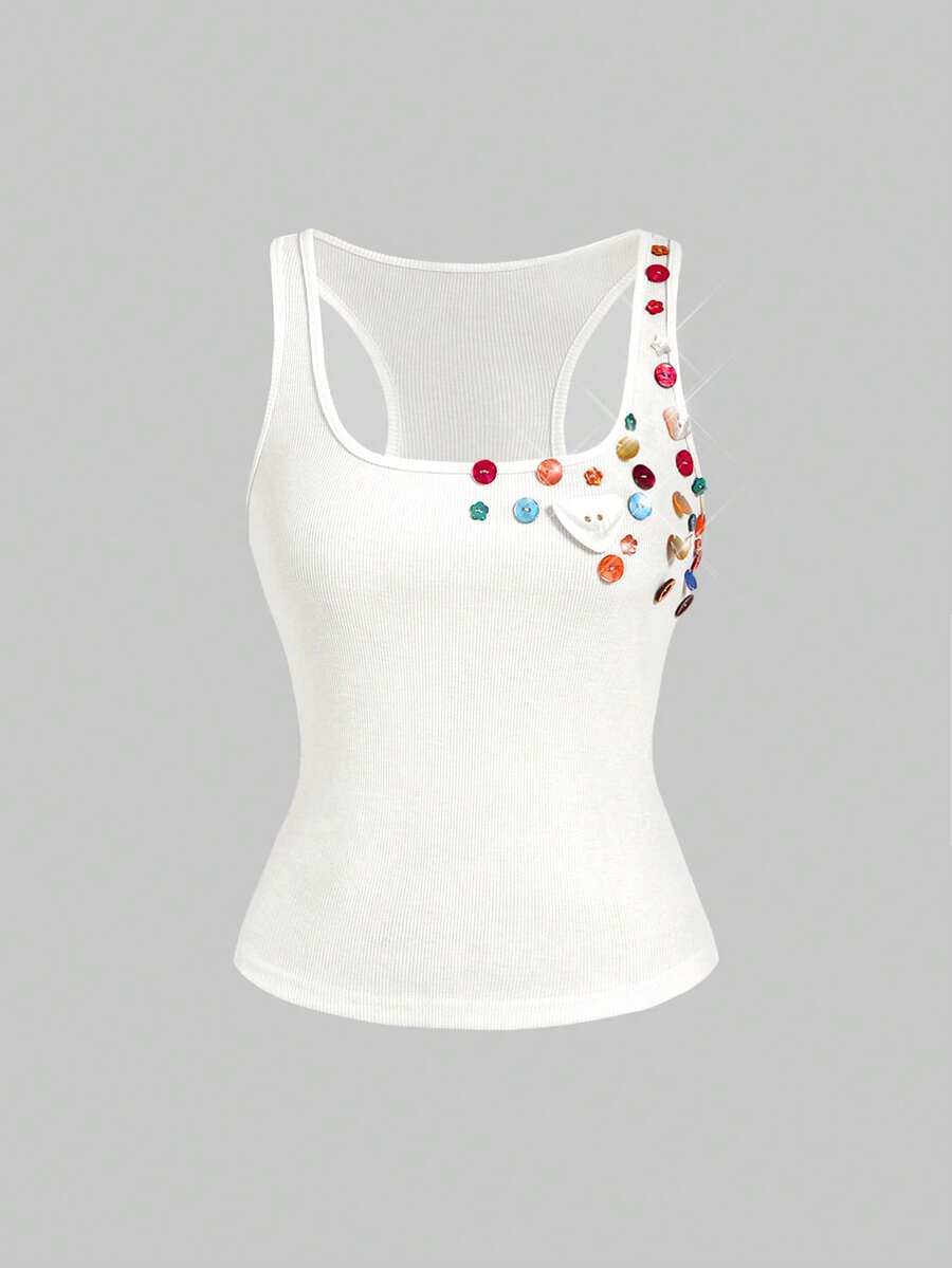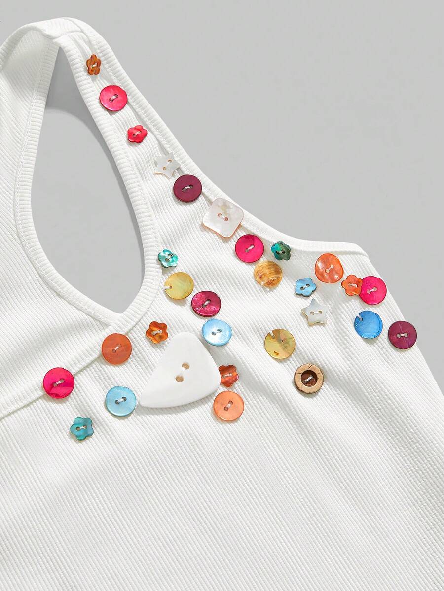 ROMWE Avant Y2K Colorful Button Crop Top, Retro Midriff-Baring Tank
