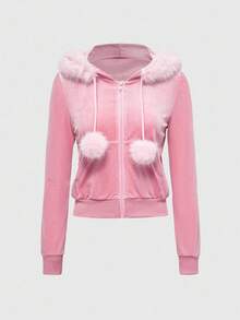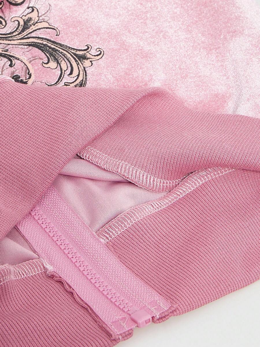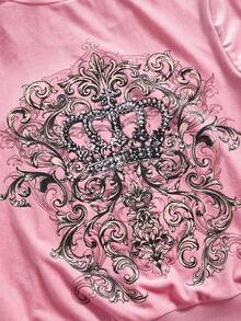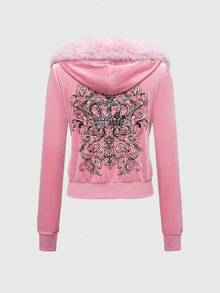 ROMWE Avant Y2K Crown Rhinestone Embellished Velvet Hoodie Sweatshirt For Women