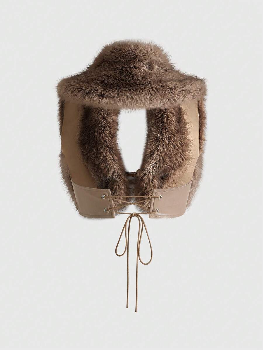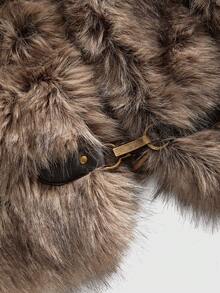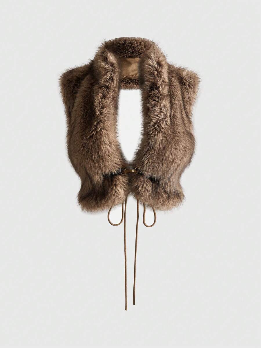 ROMWE Avant Y2K Sexy Animal Print Buckle Crop Top With Faux Fur Collar