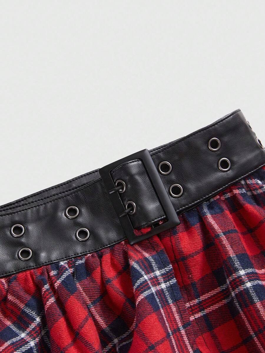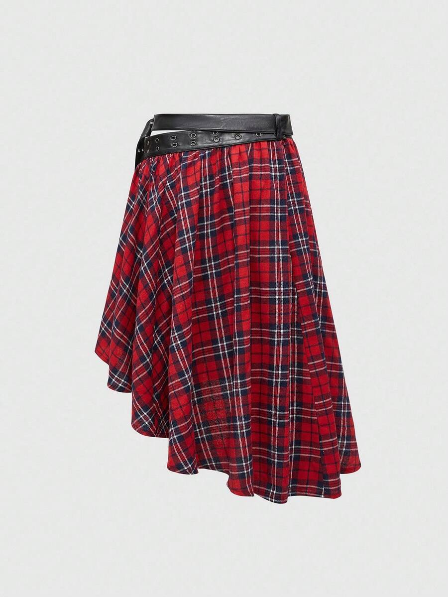 ROMWE Avant Y2K Sporty Babe Asymmetric Plaid Low-Waist Mini Skirt