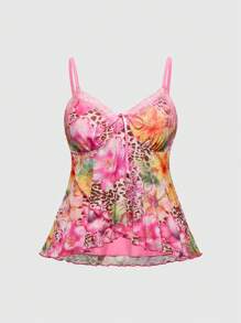 ROMWE Avant Y2K Vintage Resort Beach Vibe Leopard & Floral Print Women Tank Top