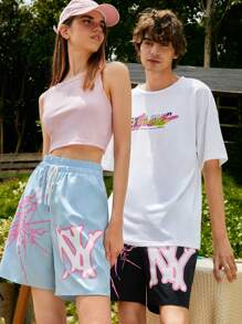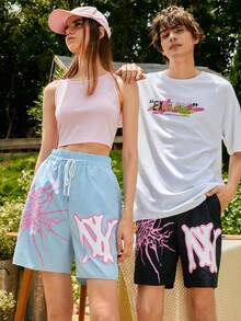 ROMWE UNISEX 1pc Letter Graphic Drawstring Shorts