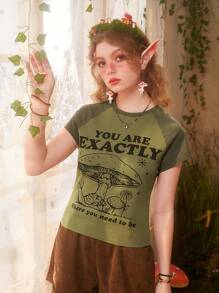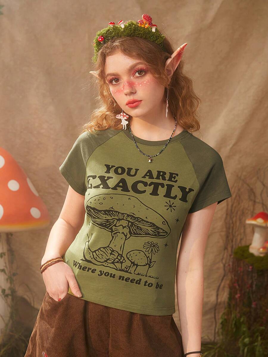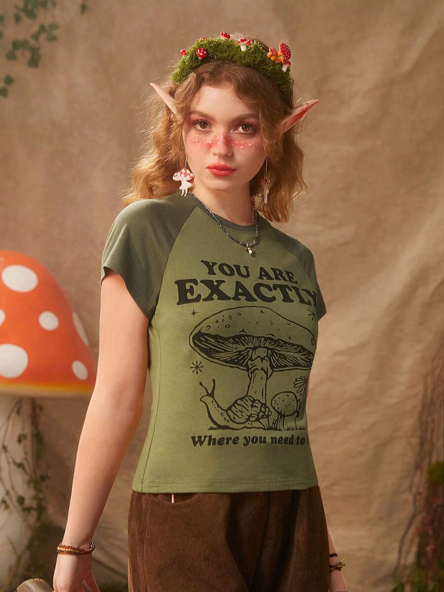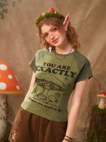 Aan Widyanto Mushroom & Slogan Graphic Raglan Sleeve Tee