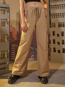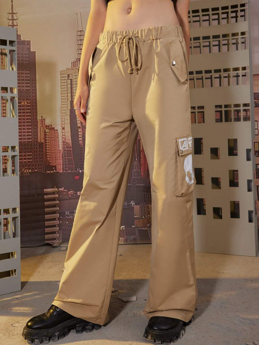 ROMWE X Call of Duty Letter Skull Graphic Drawstring Cargo Pants