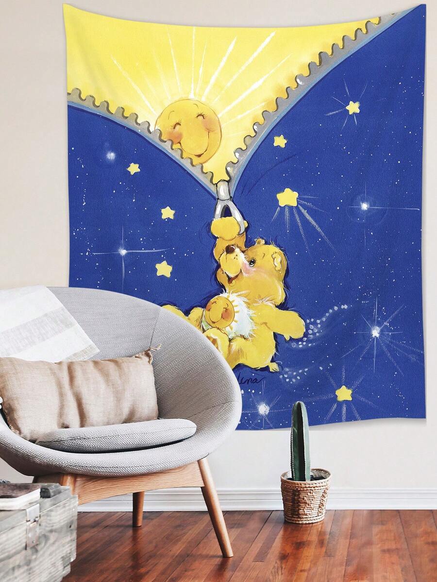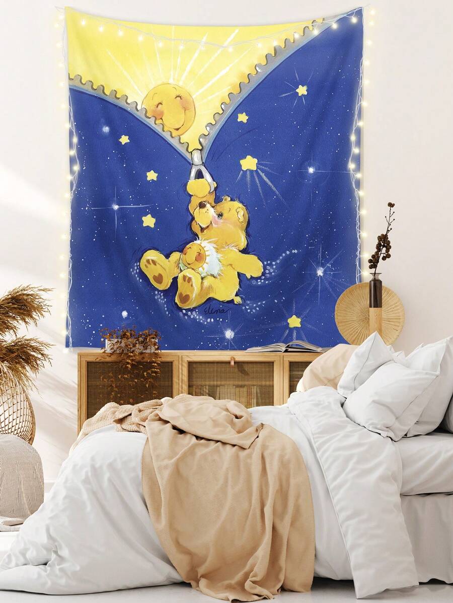 ROMWE X Care Bears 1pc Cartoon Care Bear Pattern Polyester Tapestry, Suitable For Home/Bedroom Wall Decor, Camping Decoration, All Season Use