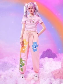 ROMWE X Care Bears Cartoon Graphic Drawstring Waist Sweatpants