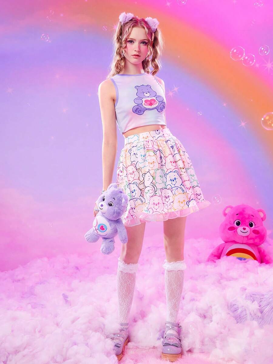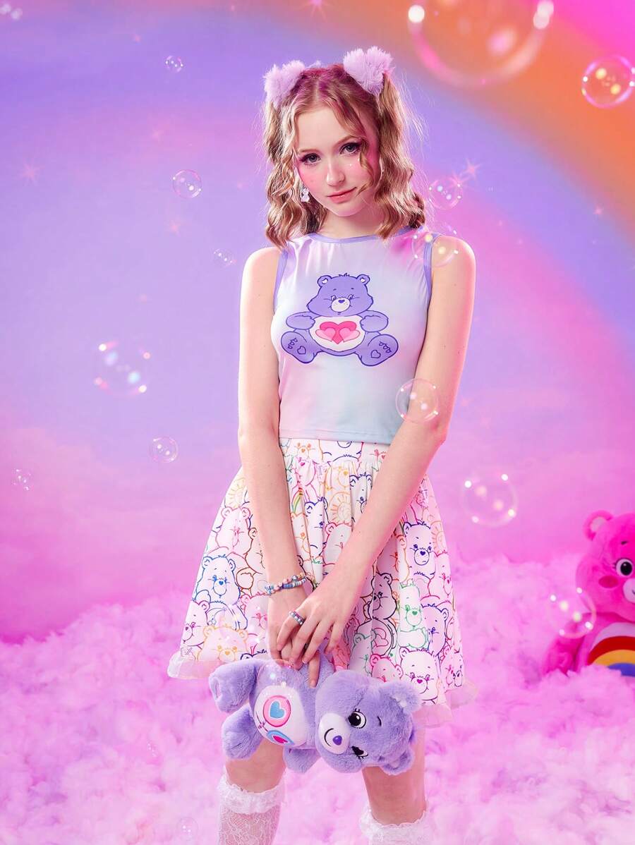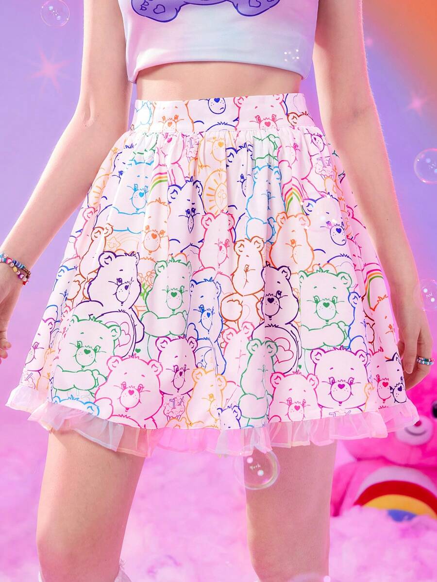 ROMWE X Care Bears Cartoon Graphic Frill Trim Skirt