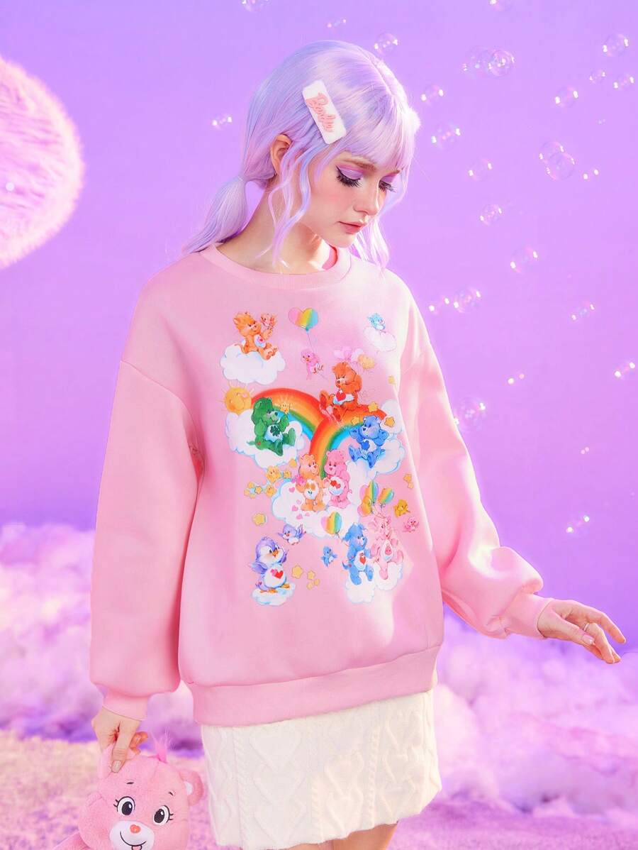 ROMWE X Care Bears Cartoon Print Comfortable Round Neck Long Sleeve Sweatshirt