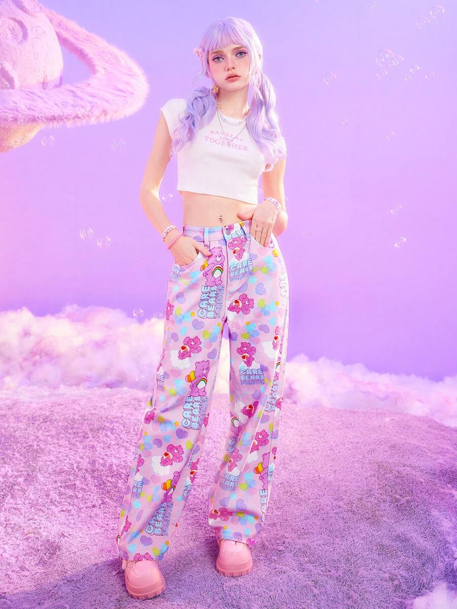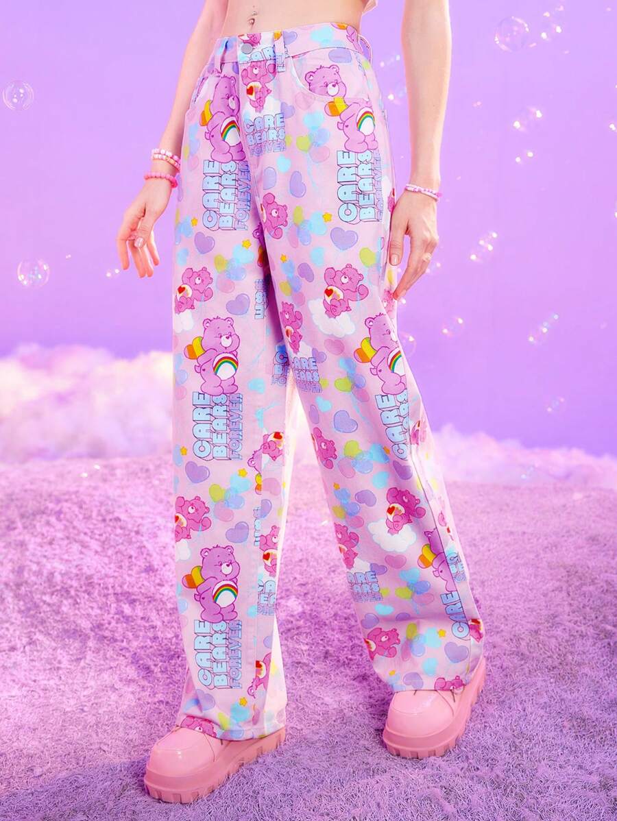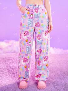 ROMWE X Care Bears Letter & Bear Allover Print Jeans