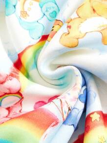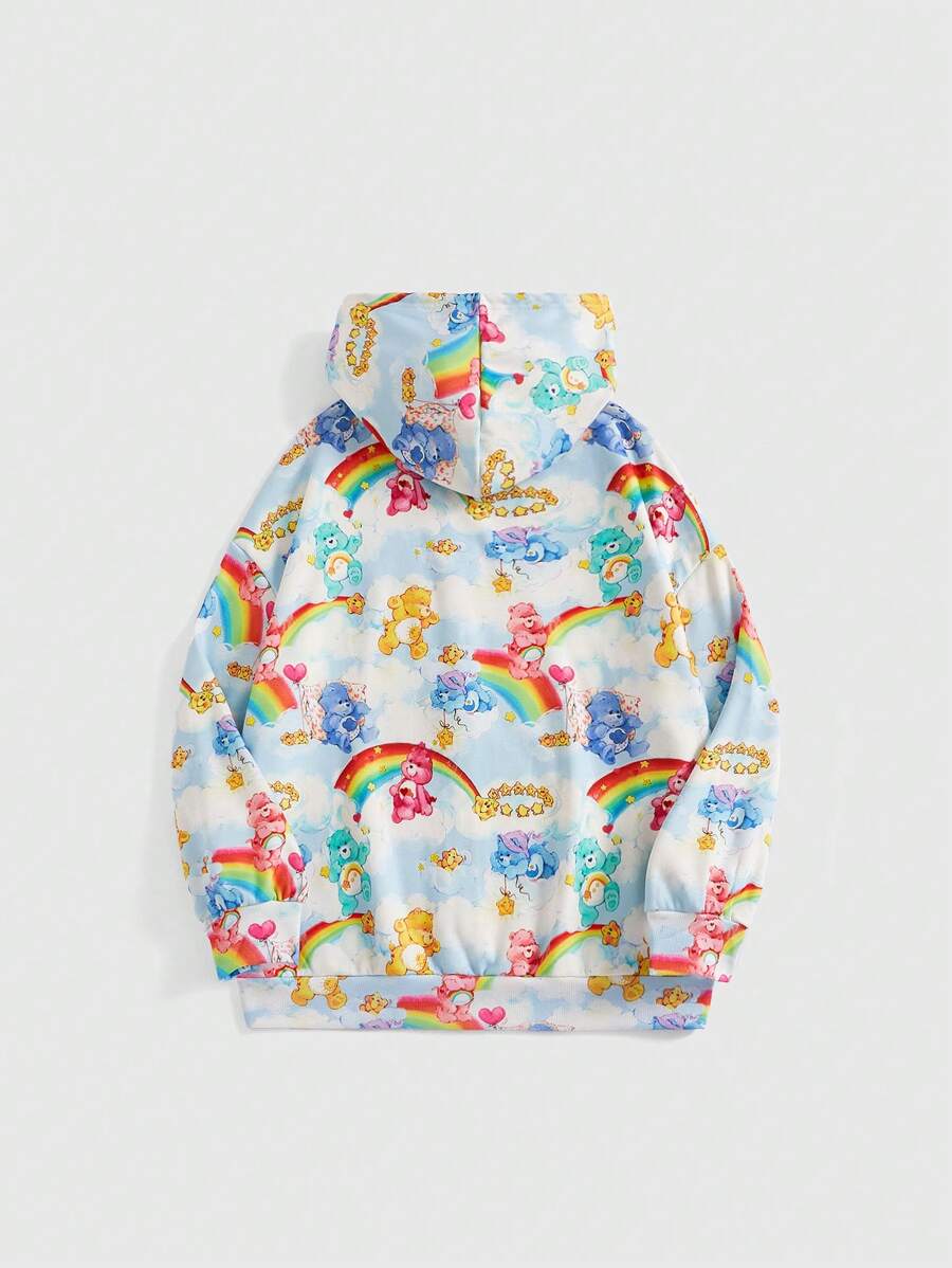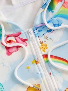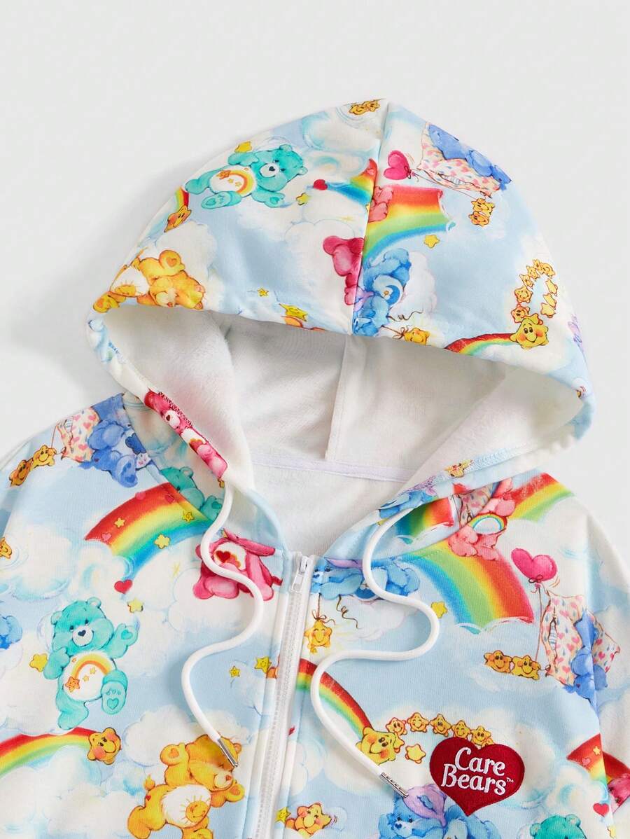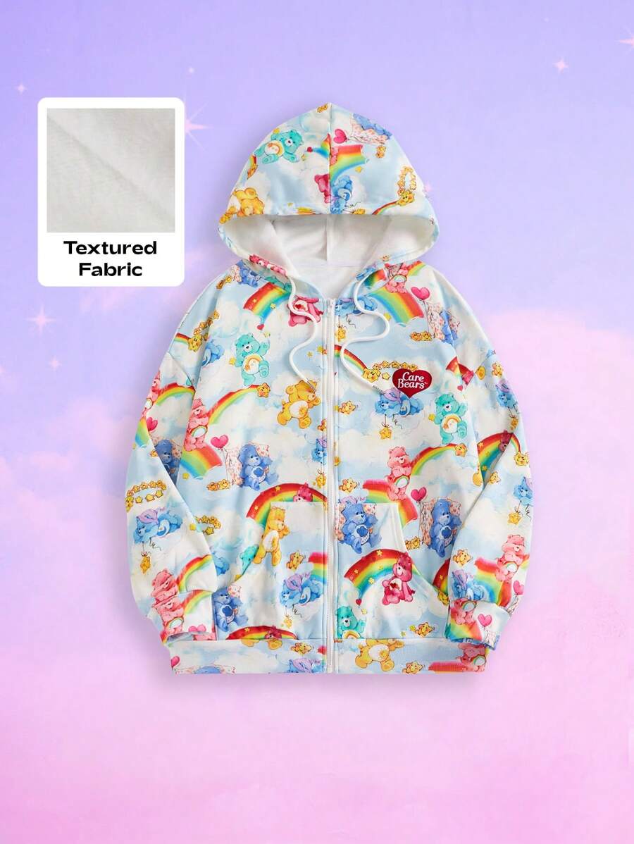 ROMWE X Care Bears Plus Size Sky Rainbow Cloud Print Hooded Zip-Up Fleece Warm Soft Comfortable Sweatshirt