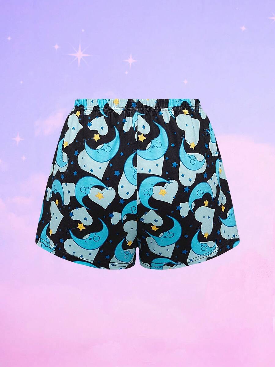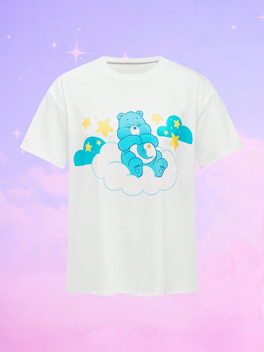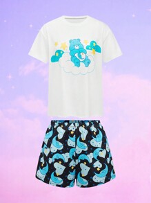 ROMWE X Care Bears Women Cute Good Night Bear Short Sleeve Top & Shorts Pajama Set
